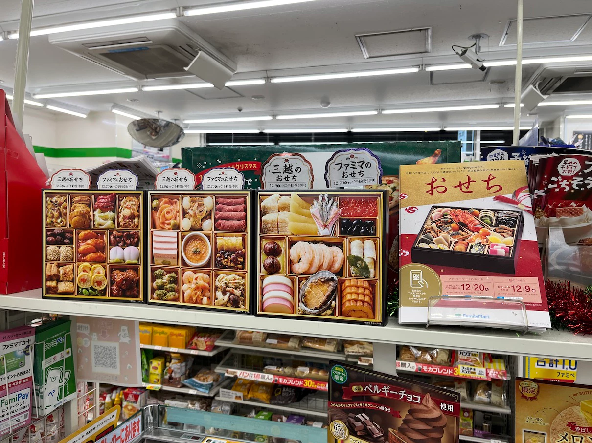 편의점에서 이것저것 구입하면서 보니 일본에서 새해 음식으로 먹는 오세치 요리의 예약을 편의점에서도 받는 것을 알게 되었네요.