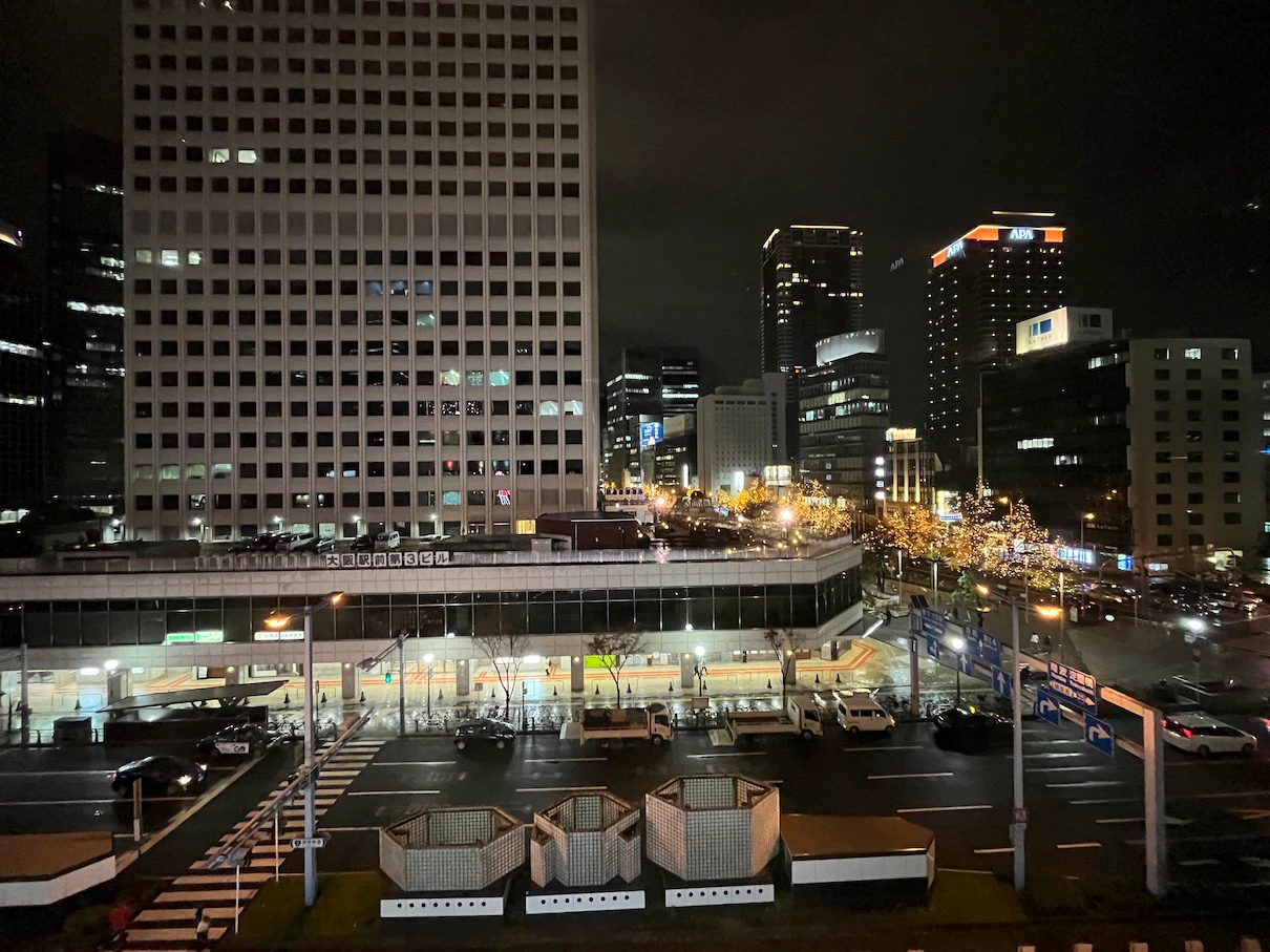 시내호텔이라는 느낌이 확실하게 느껴지는 뷰를 보며 조금 더 술을 마시다가 잠에 들어요.