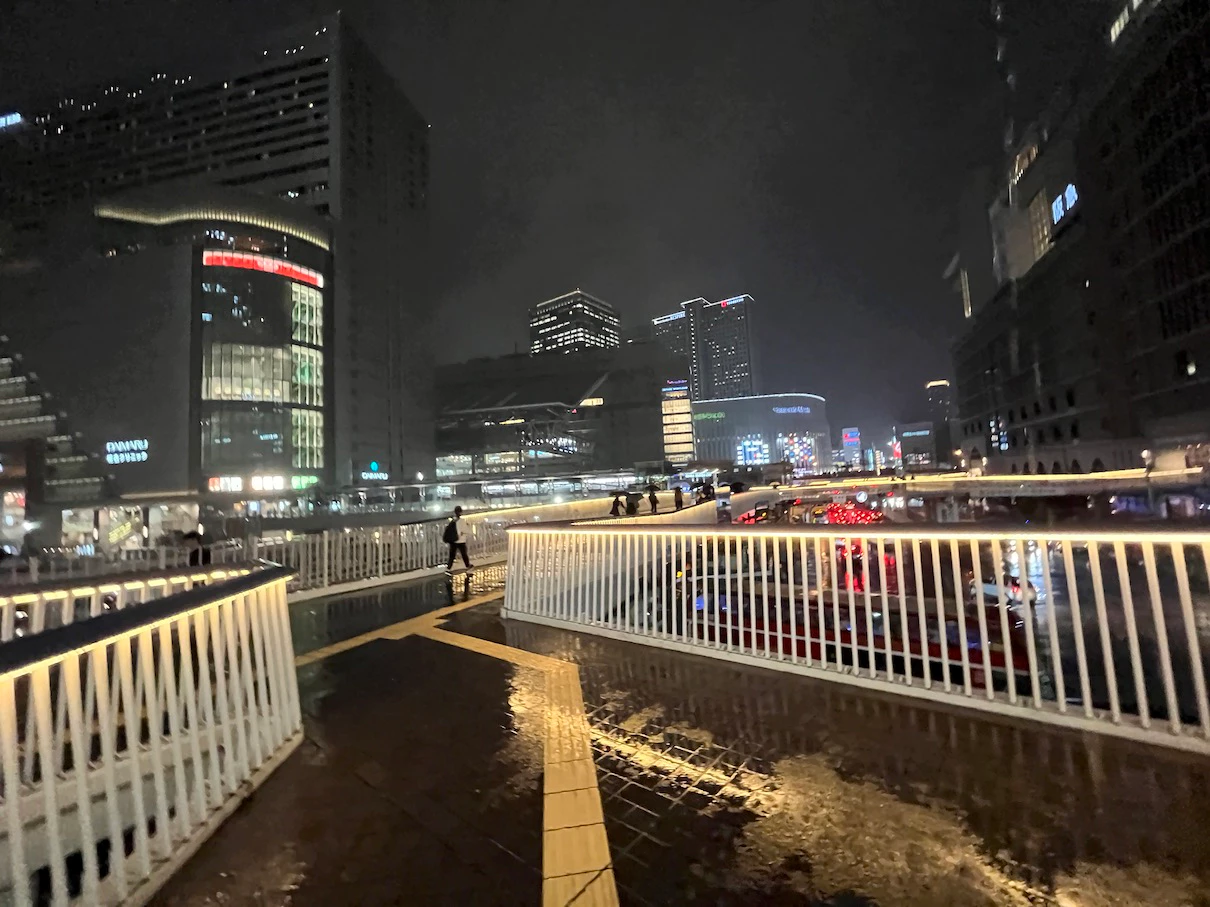 저도 일단은 지상으로 나왔으니 지상으로 가겠다는 생각에 거센 비를 뚫으며 육교를 지나서 길을 건넜어요.