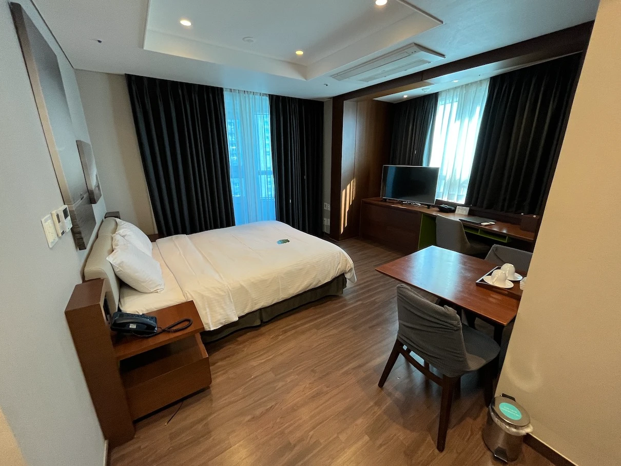 객실의 넓이가 고정이 아닌 타입들도 있는 점에서 아실수도 있겠지만, 호텔 홈페이지에도 '배정되는 객실 호수에 따라 구조가 상이할 수 있습니다.'라고 적혀있고 실제로 제가 예약했던 스튜디오 디럭스 더블 객실도 사진과 실제 모습의 구조가 달랐습니다.