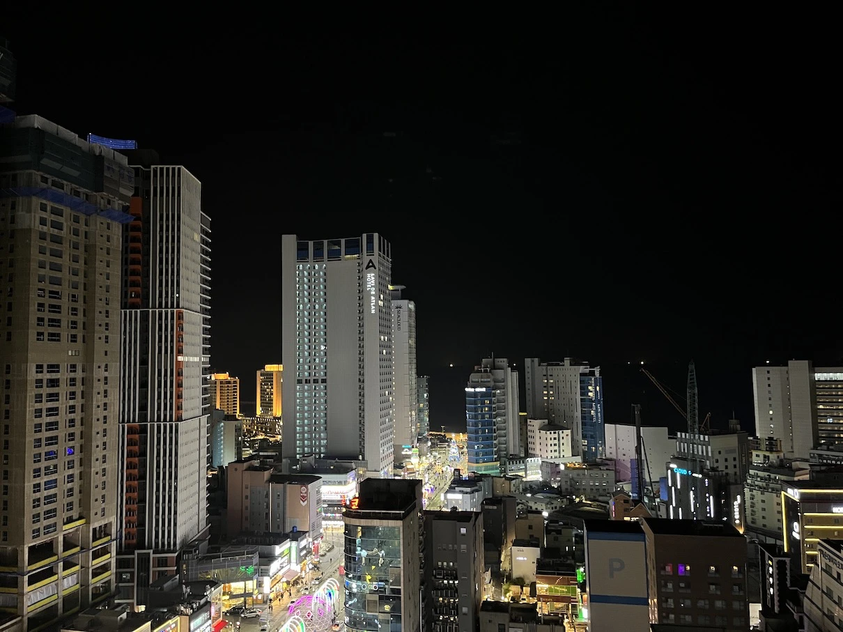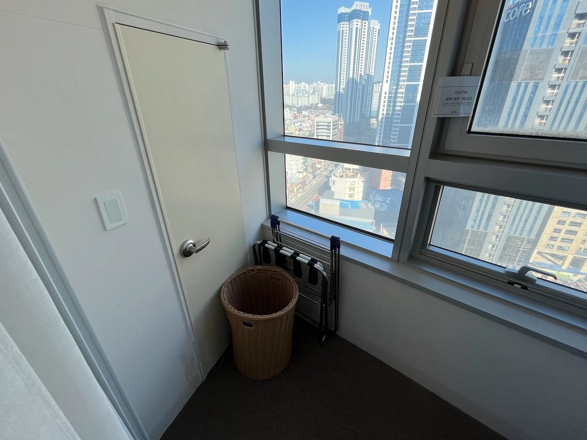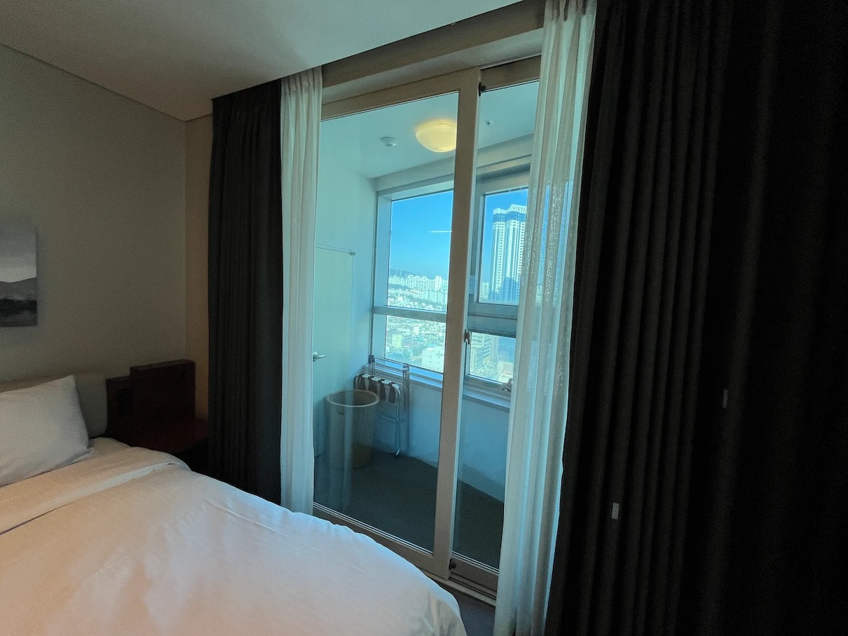 전망 : 해운대 시내 + 끝자락에 바다가 보이는 전망(객실마다 차이가 클 것 같습니다)