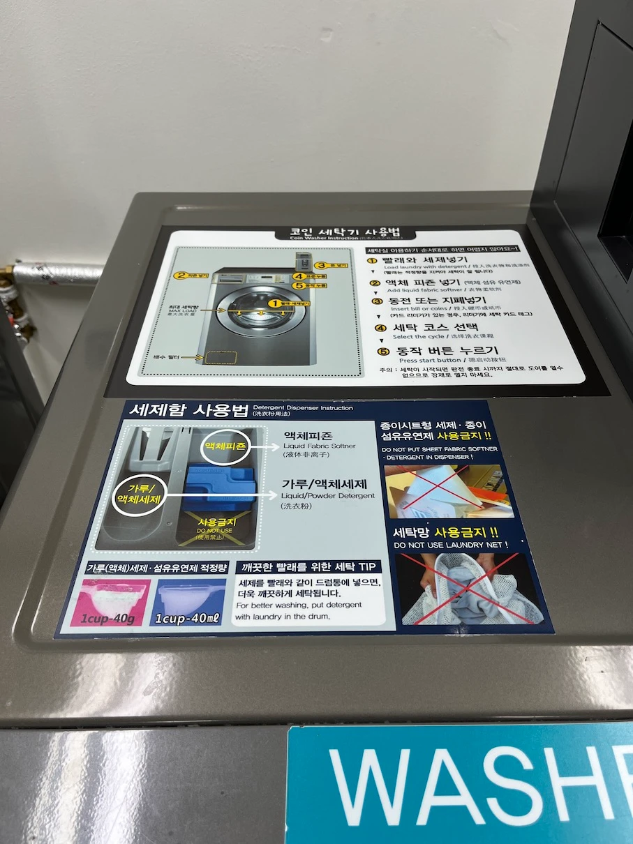 코인세탁실 벽면에 붙어있던 이용안내입니다.