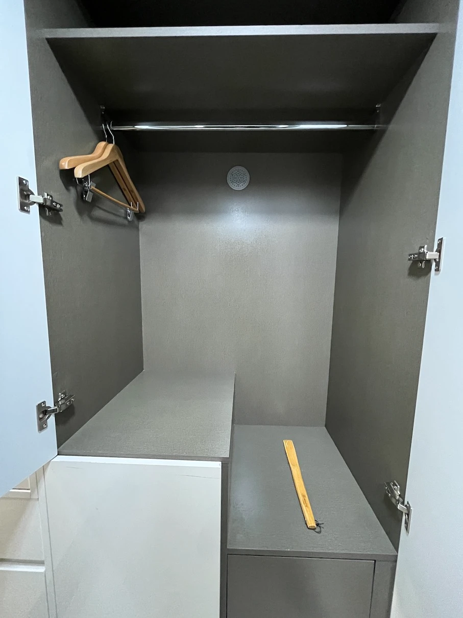 옷장은 현관 쪽에 있는데 일반적인 여닫이 문 형태의 옷장입니다.