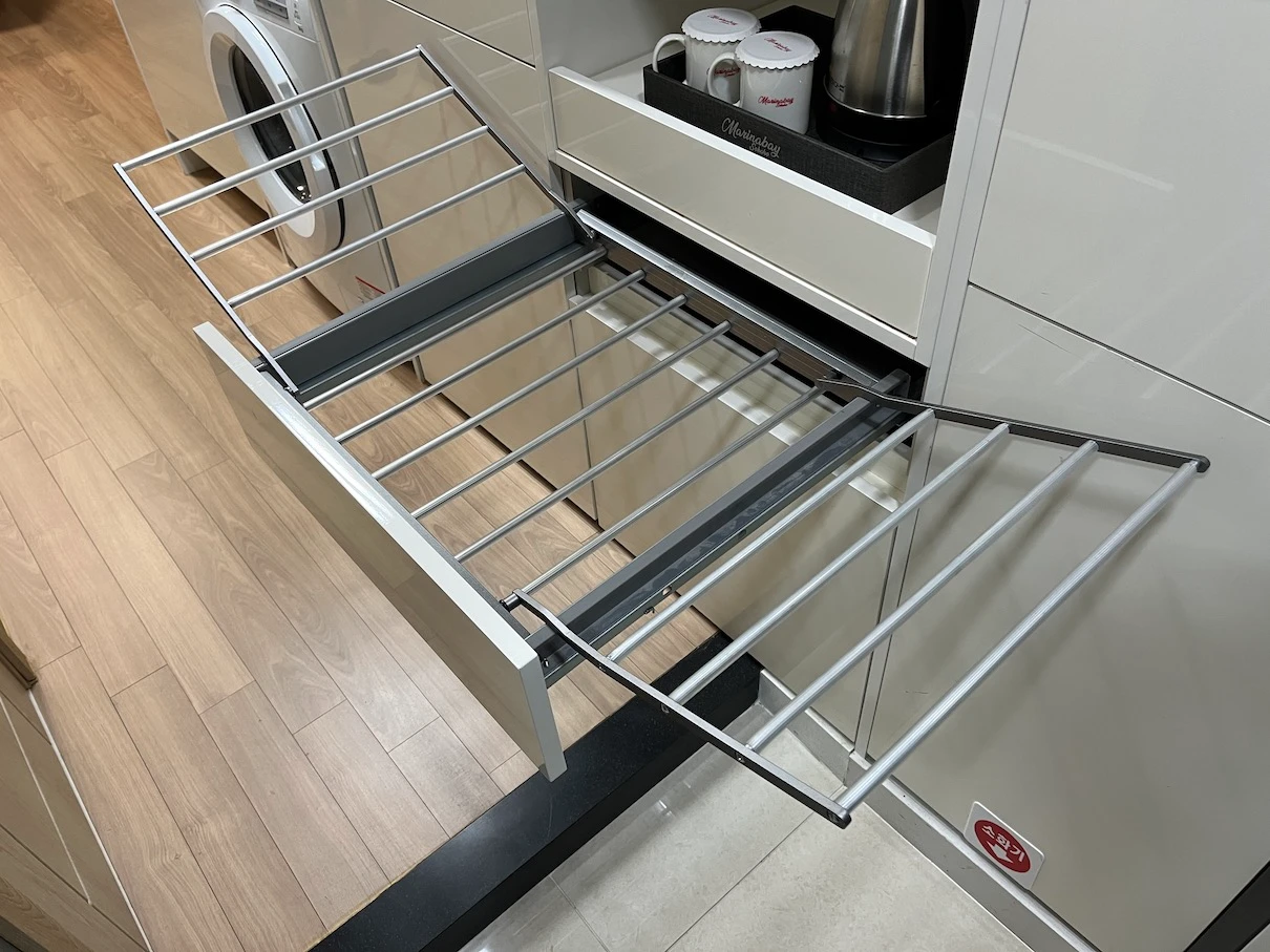 리센 오션파크 때는 세탁기는 있는데 빨래 건조대가 보이질 않았던 것 같은데 여기는 세탁기도 빨래 건조대도 있습니다.