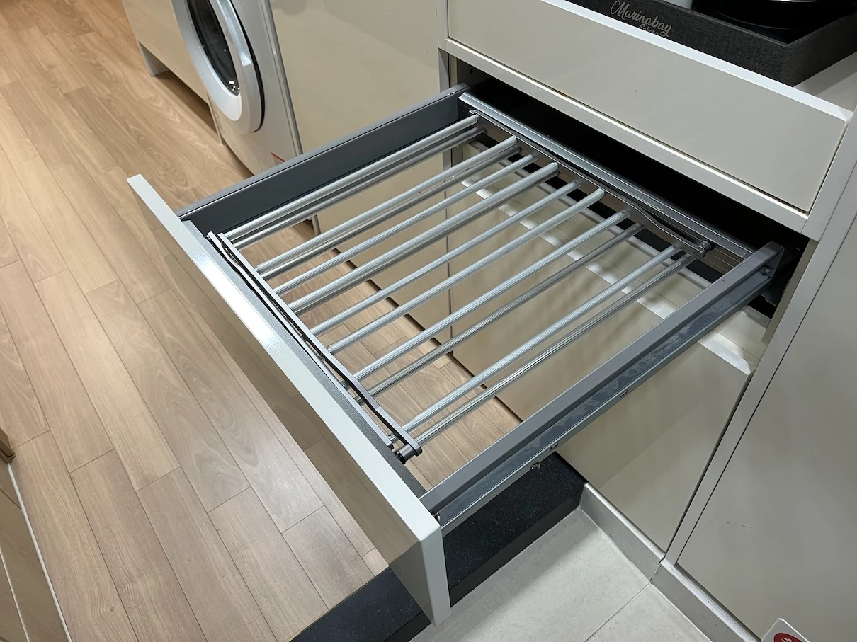 빨래 건조대는 들어오는 입구 쪽에 커피포트 있는 선반 아래를 열어보면 있습니다.