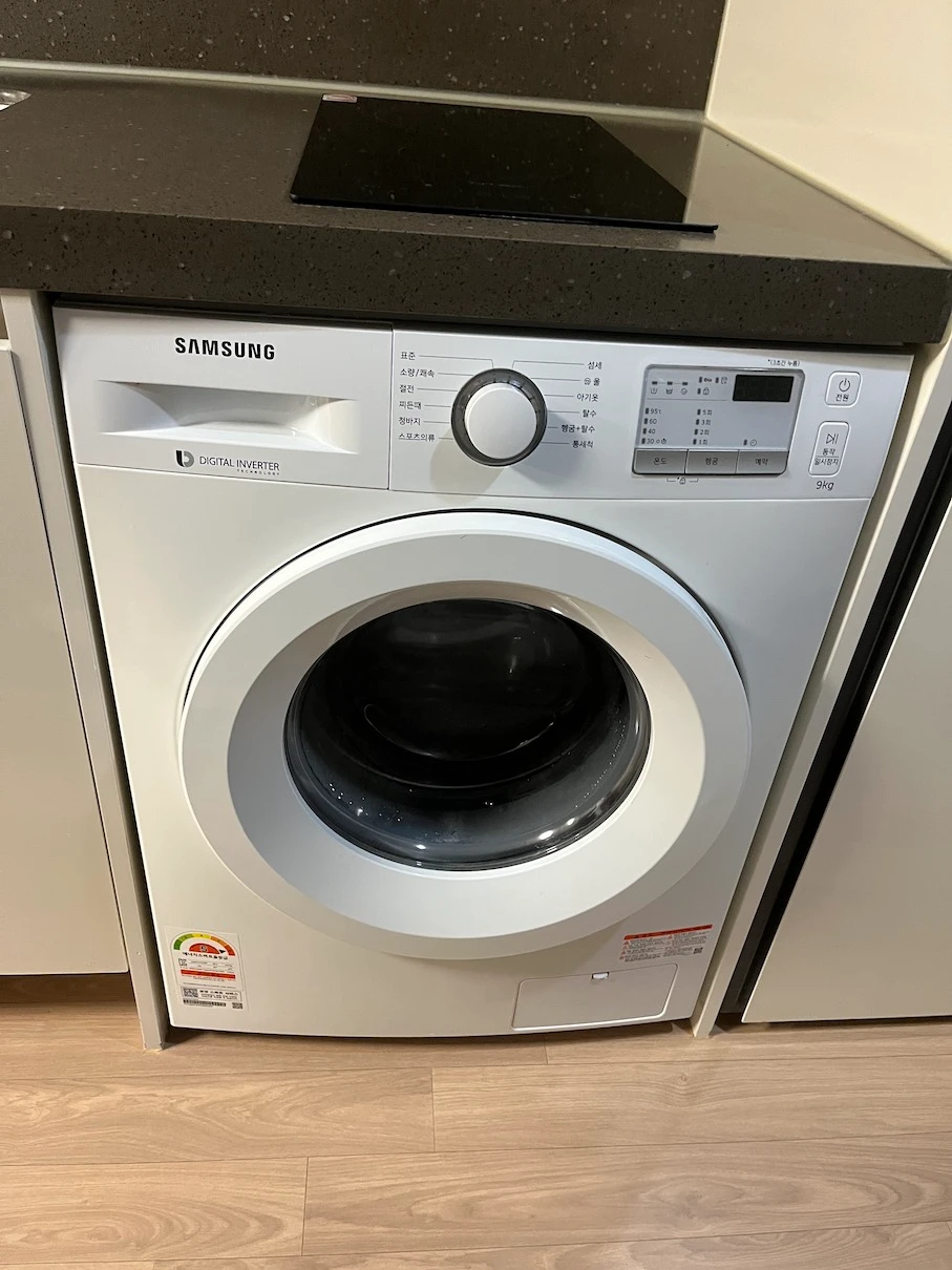 - 객실 내에 세탁기와 빨래 건조대가 있음