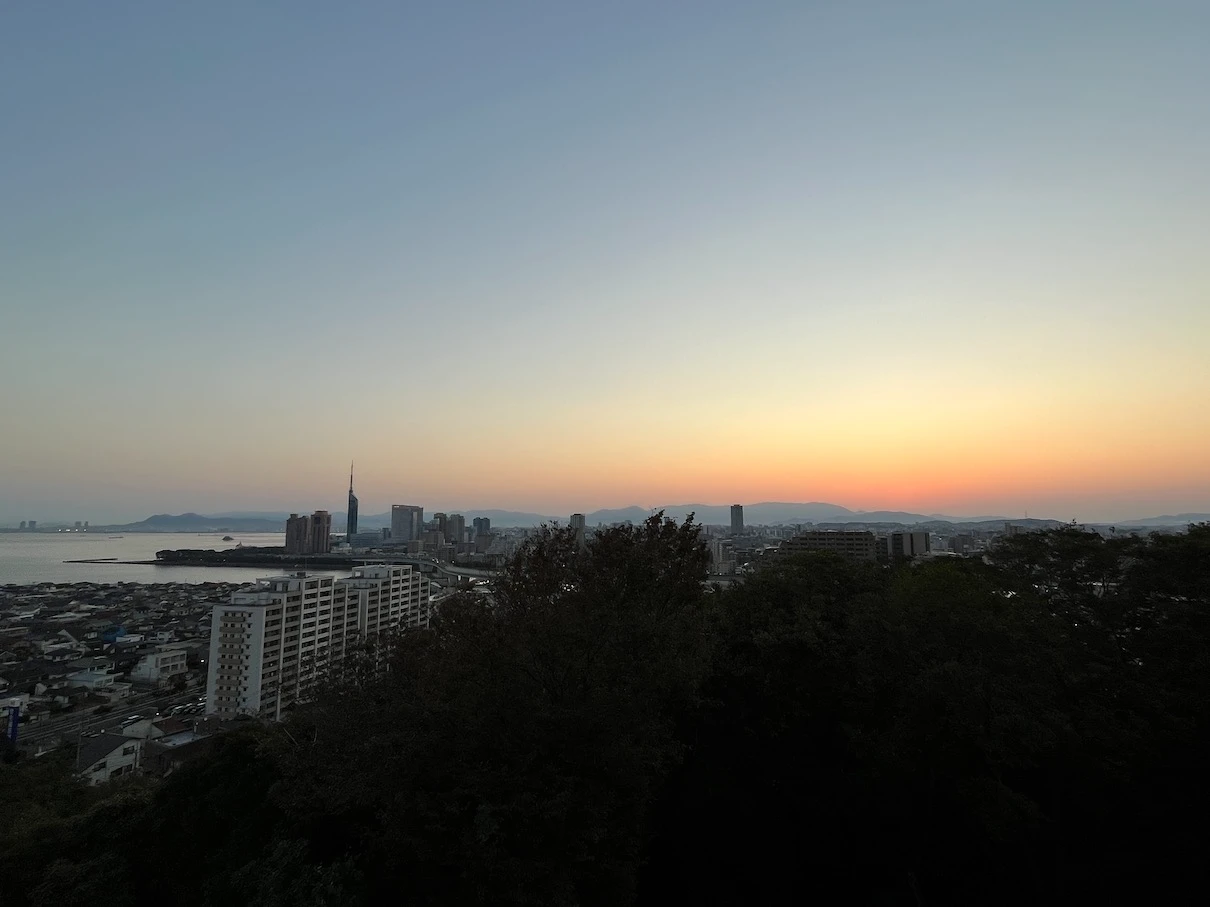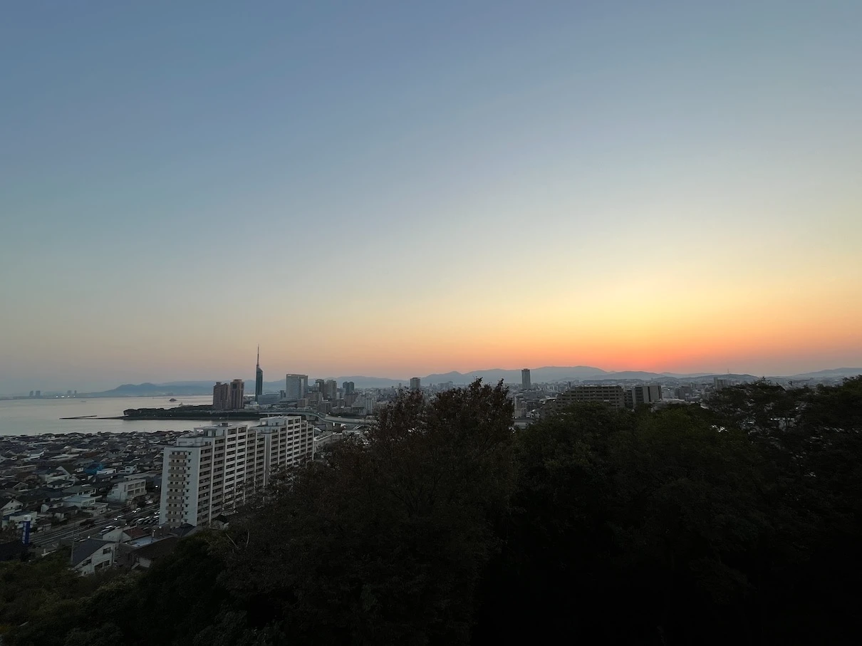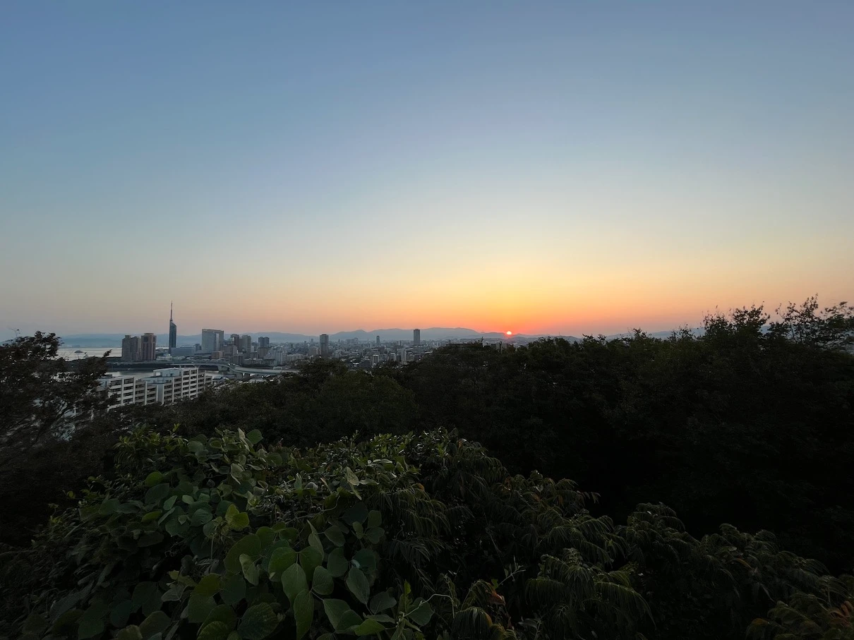 하지 전후인 6~7월 경에 방문했다면 후쿠오카 타워 근처에서 뜨는 일출을 볼 수 있겠지만 아쉽게도 11월이라 후쿠오카 타워에서는 조금 거리가 있는 위치에서 일출이 보입니다.
