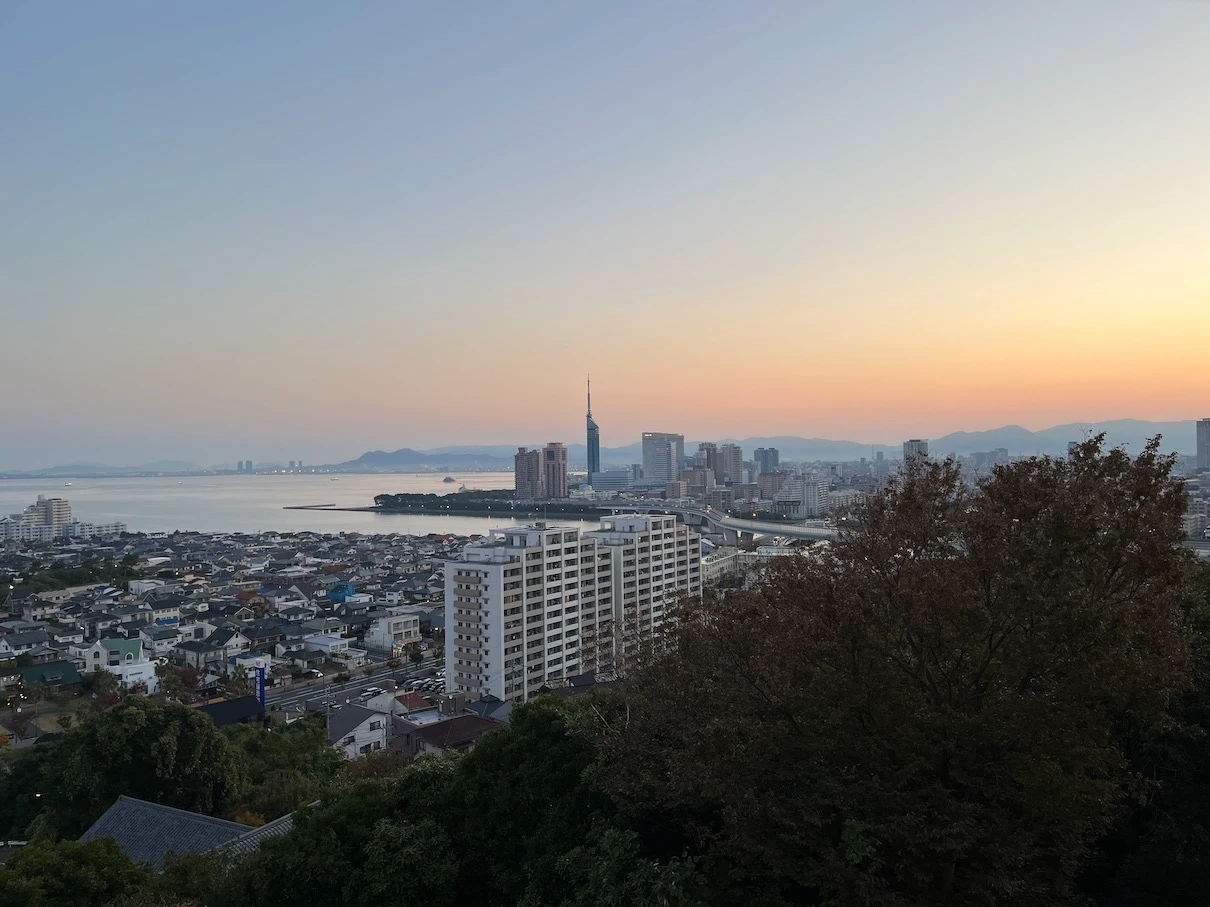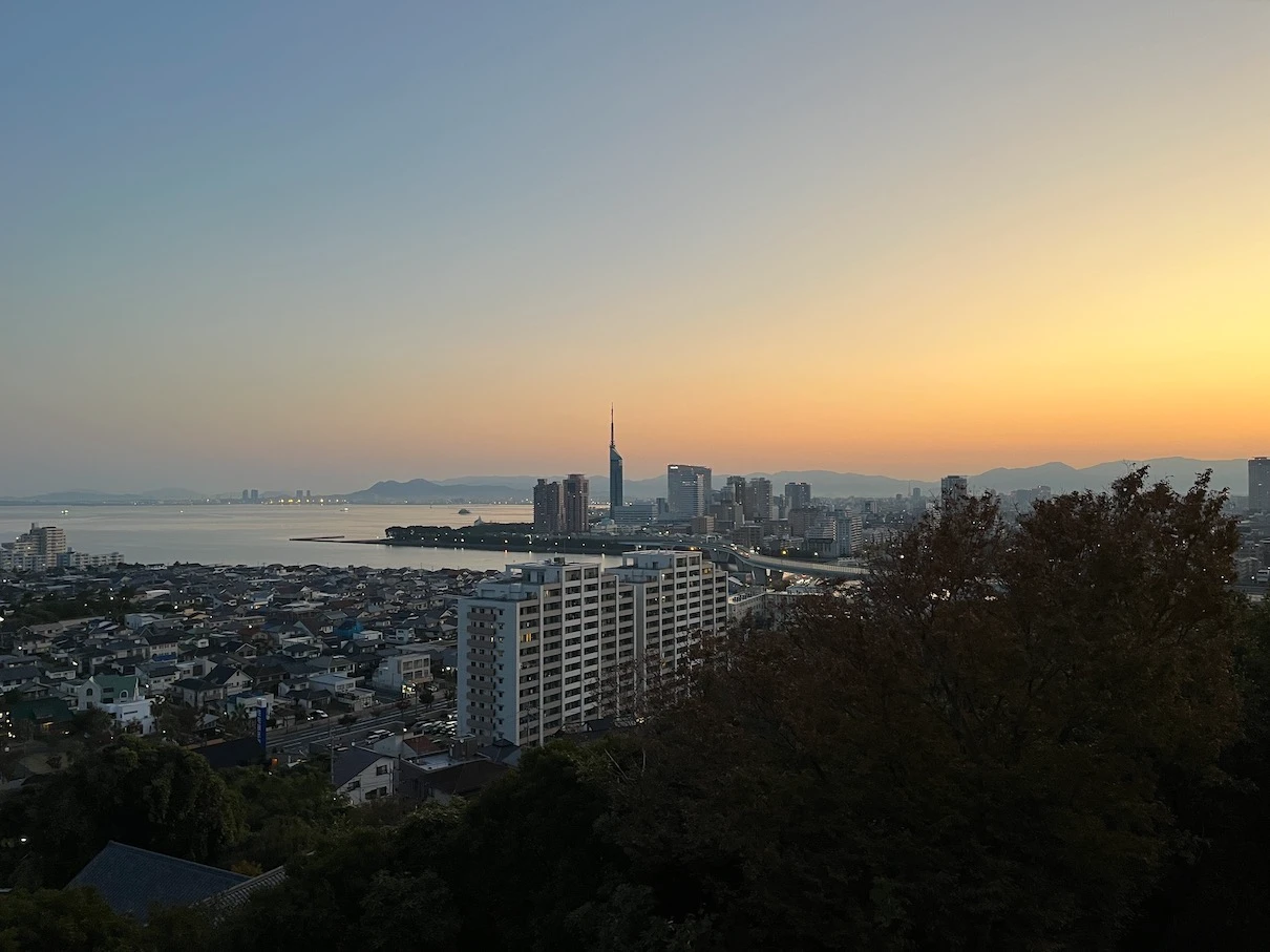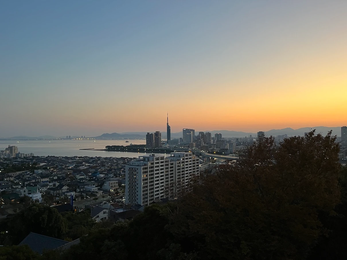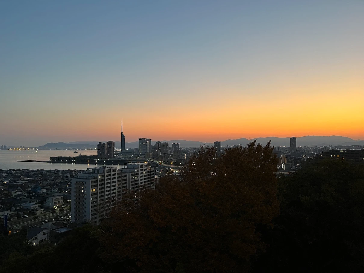 하지 전후인 6~7월 경에 방문했다면 후쿠오카 타워 근처에서 뜨는 일출을 볼 수 있겠지만 아쉽게도 11월이라 후쿠오카 타워에서는 조금 거리가 있는 위치에서 일출이 보입니다.