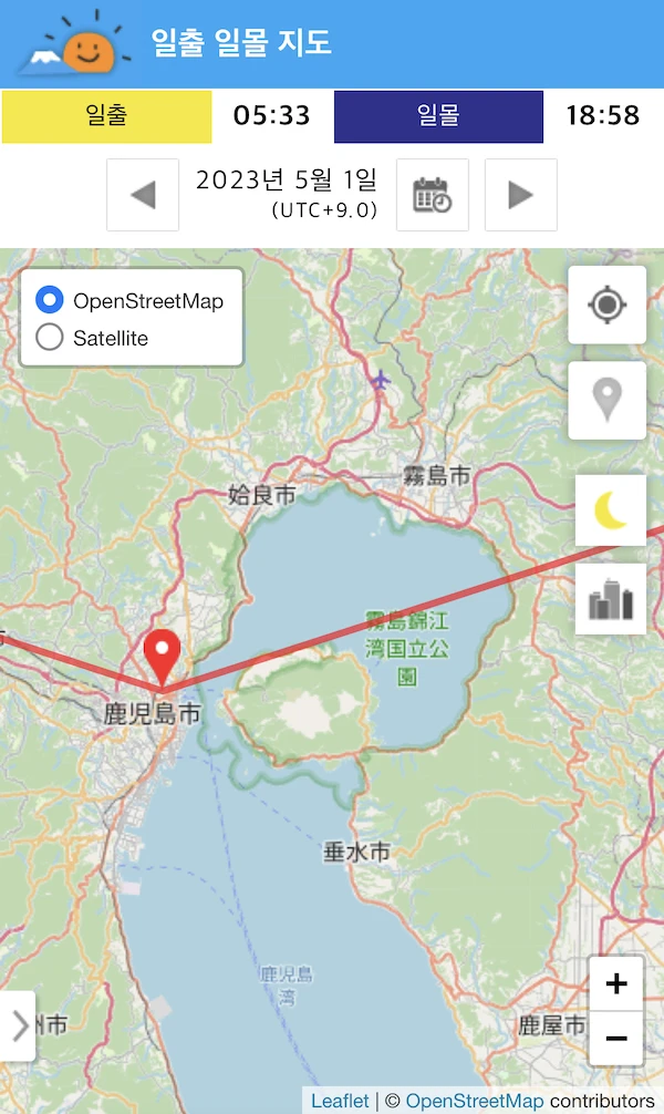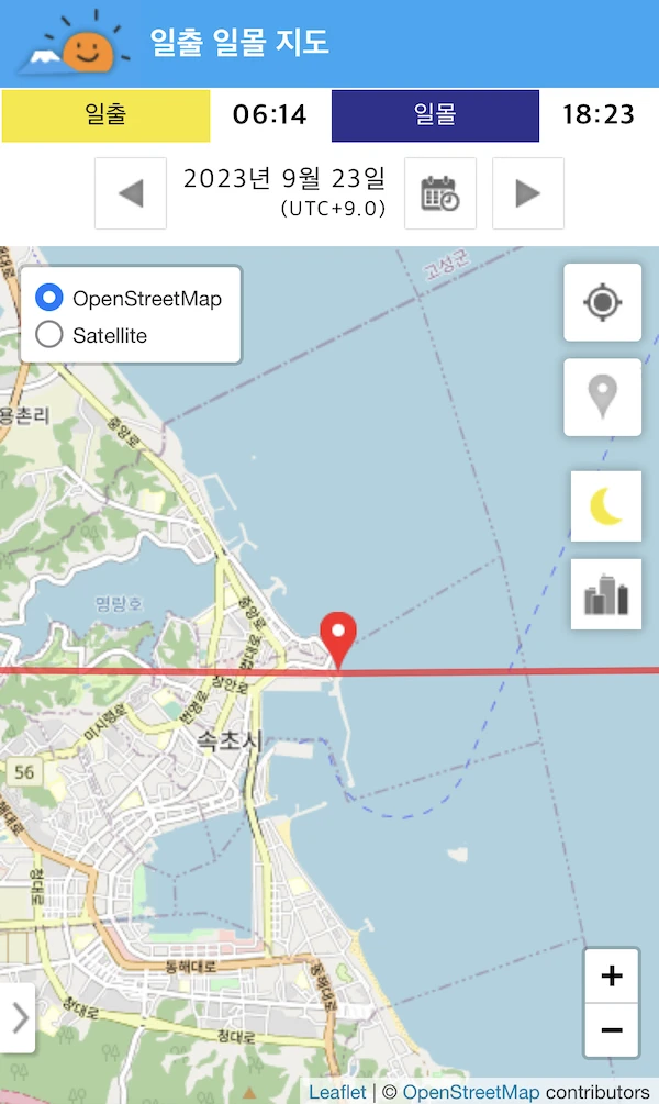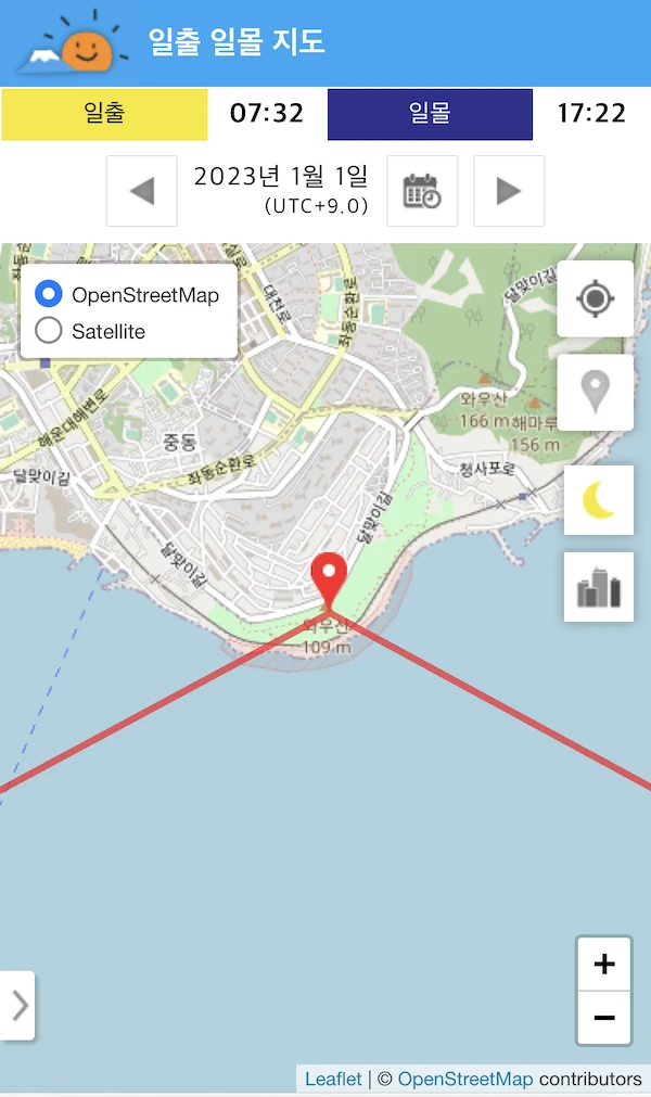 일출 일몰 시간 방향 지도