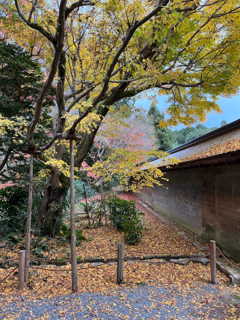 정원 옆으로 단풍이 보여 정원, 풍경, 처마를 한 장으로 담아봤어요.
