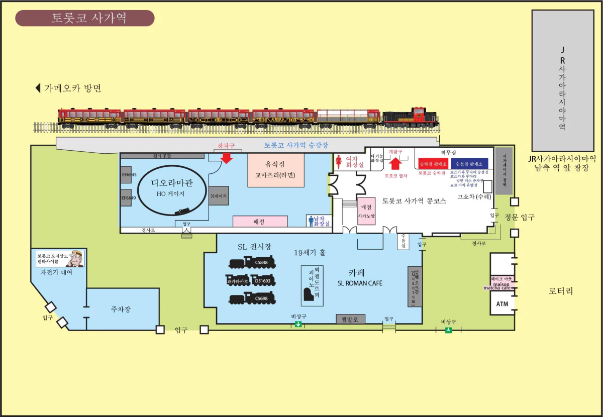 이미지 상의 이름은 토롯코 가메오카역으로 잘못되어있는데, 실제로 제가 본 토롯코 아라시야마역 구조 그대로입니다.