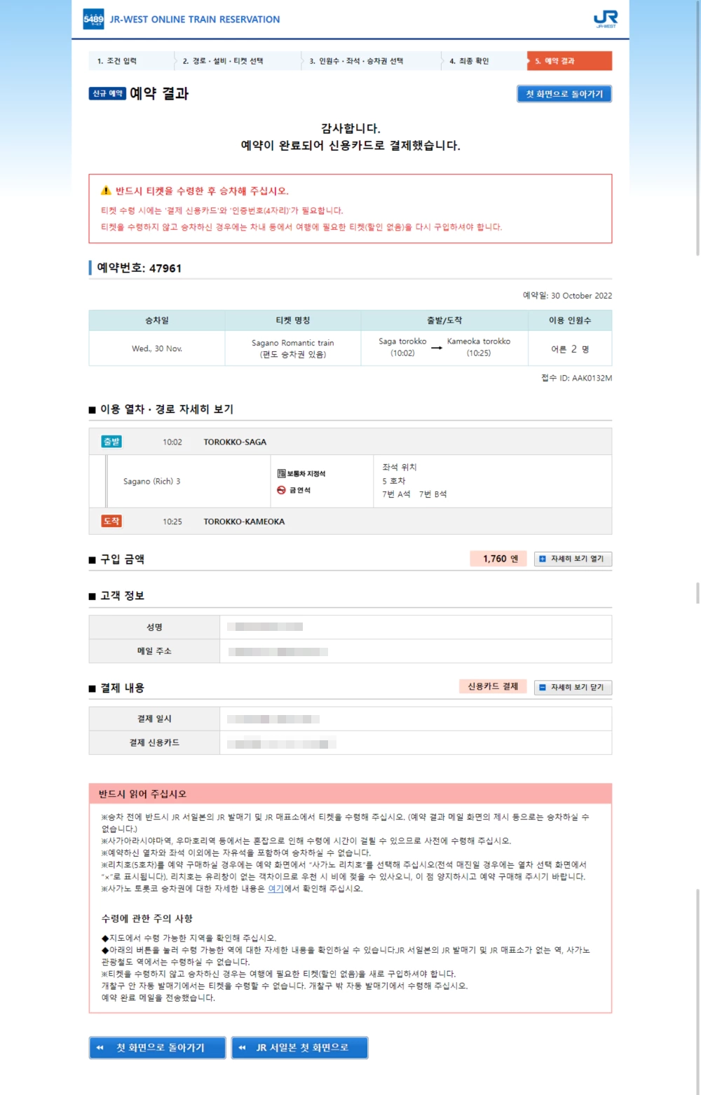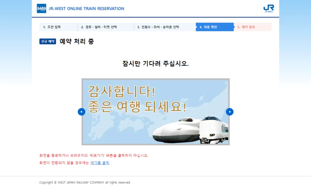 두 링크 모두 결과적으로는 같은 사이트(JR-WEST ONLINE TRAIN RESERVATION)로 가게 됩니다.