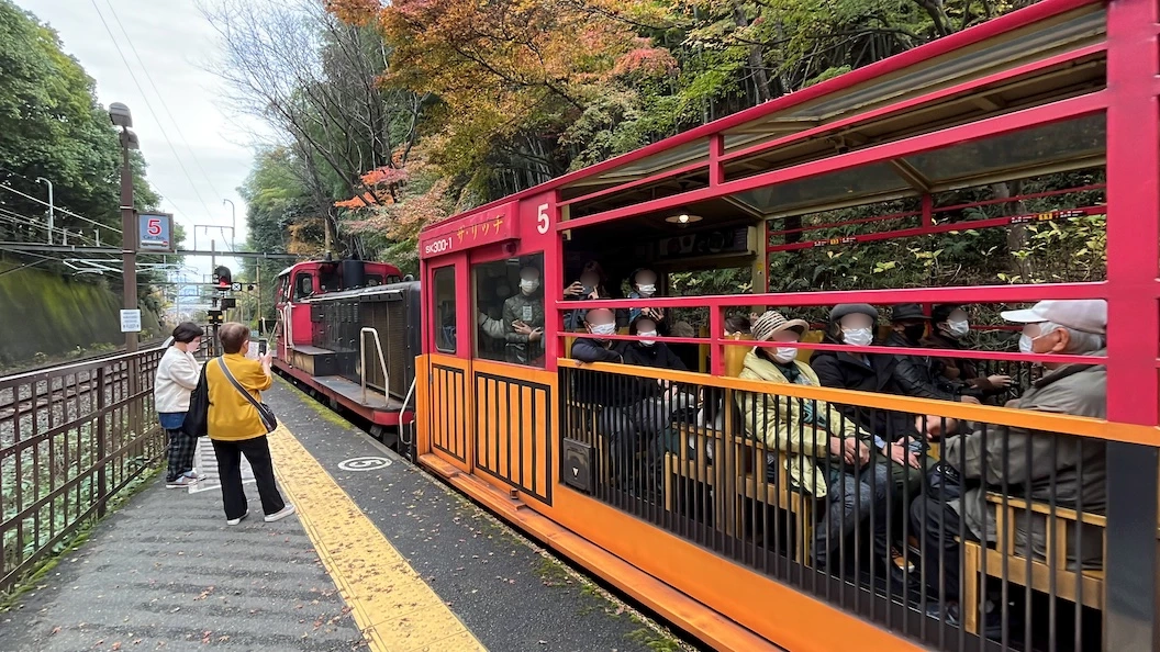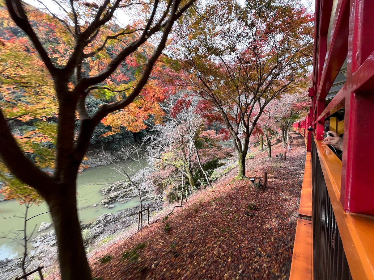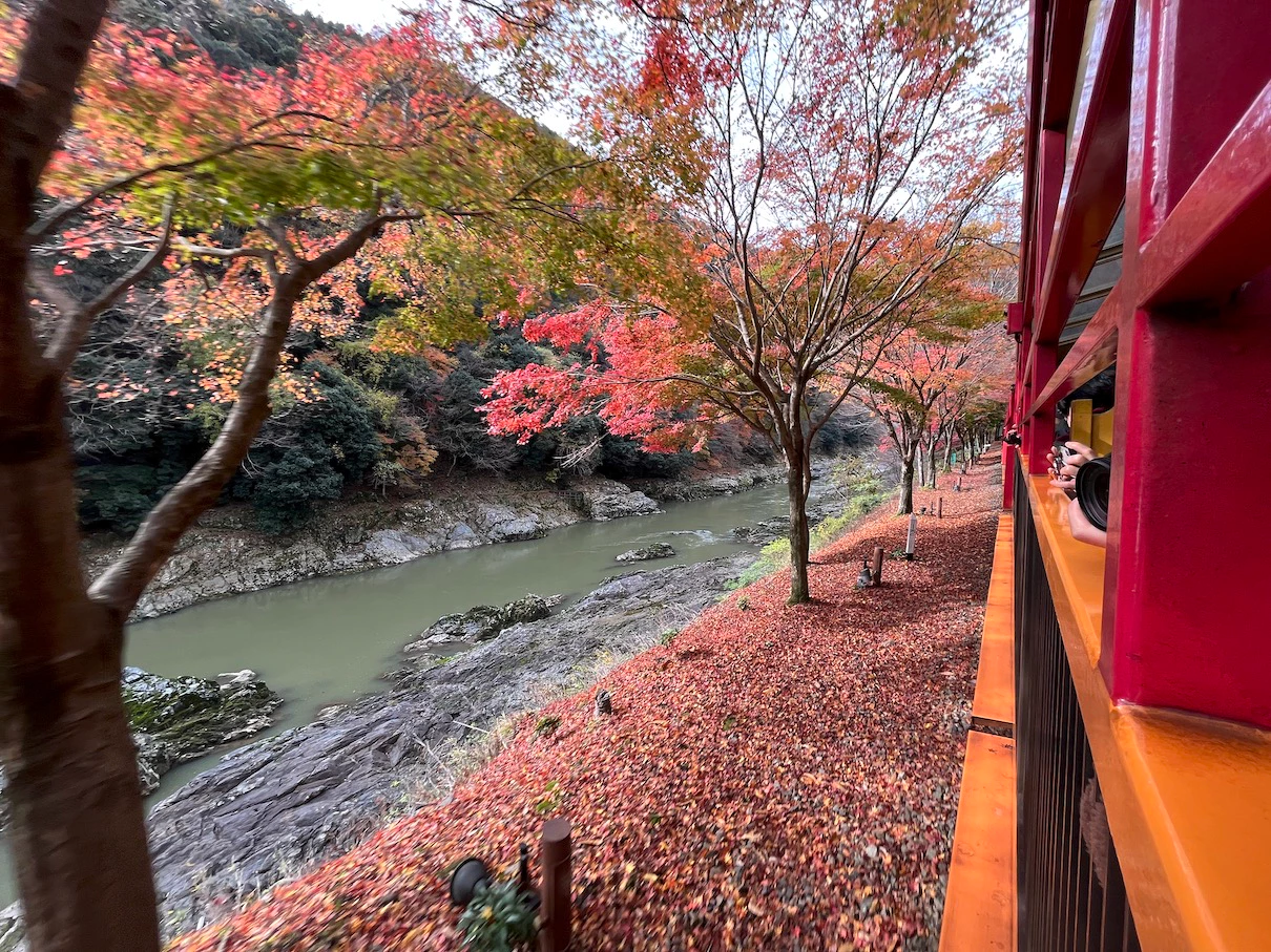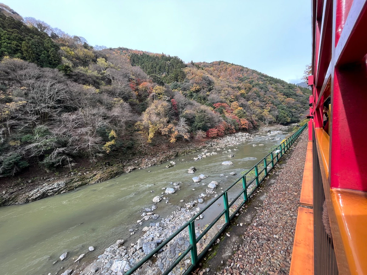 간사이여행에서 단풍을 구경하러 여러 곳도 다니고 관광열차도 한 번 탔었는데, 교토 아라시야마 쪽에 강과 경치를 구경하는 관광열차인 사가노 관광선, 이른바 토롯코 열차입니다.