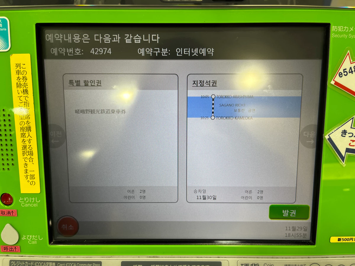 유인 매표소에서도 가능하지만 위와 같이 JR역의 자동발매기에서도 티켓 수령이 가능합니다.