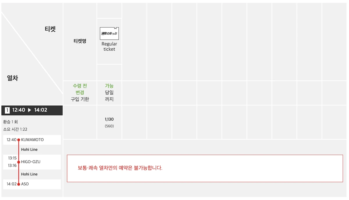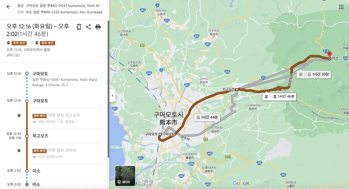 구마모토에서 쿠로카와 온천까지 버스 최대한 짧게 타기(기차-버스 환승)