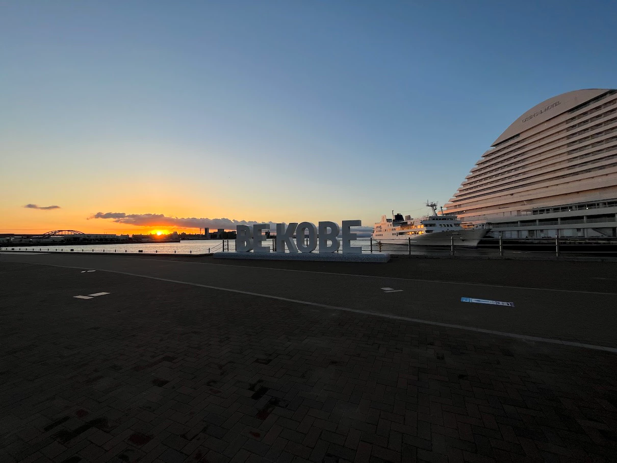 고베 메리켄파크 BE KOBE 앞에서 보는 일출