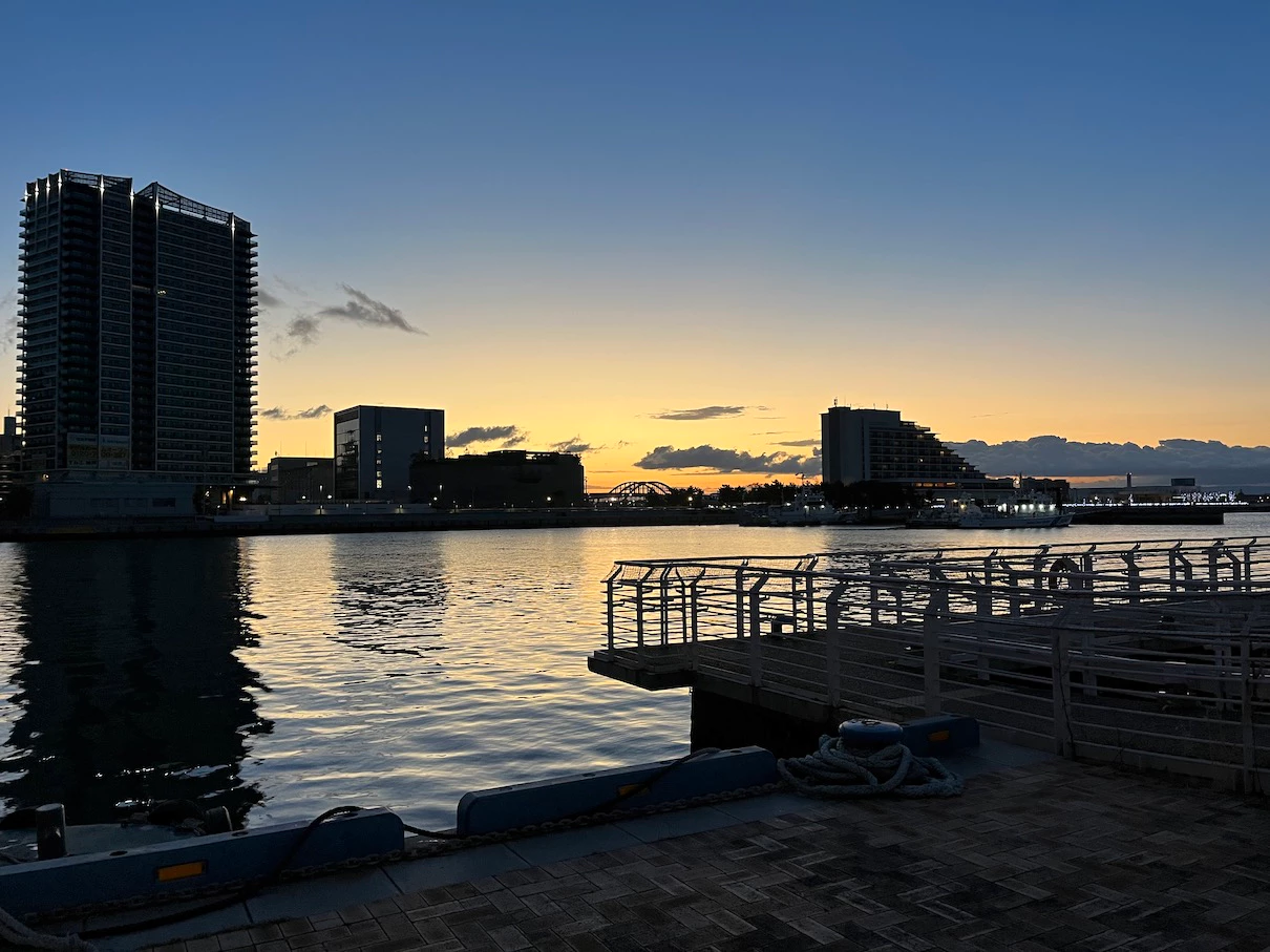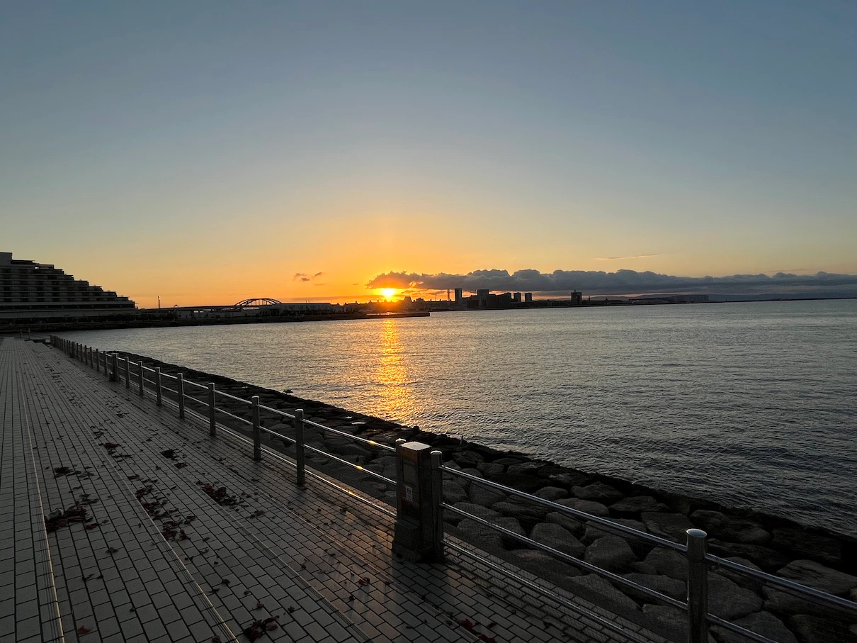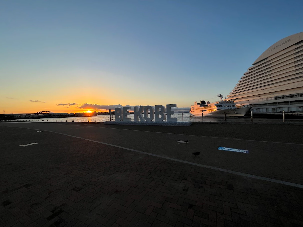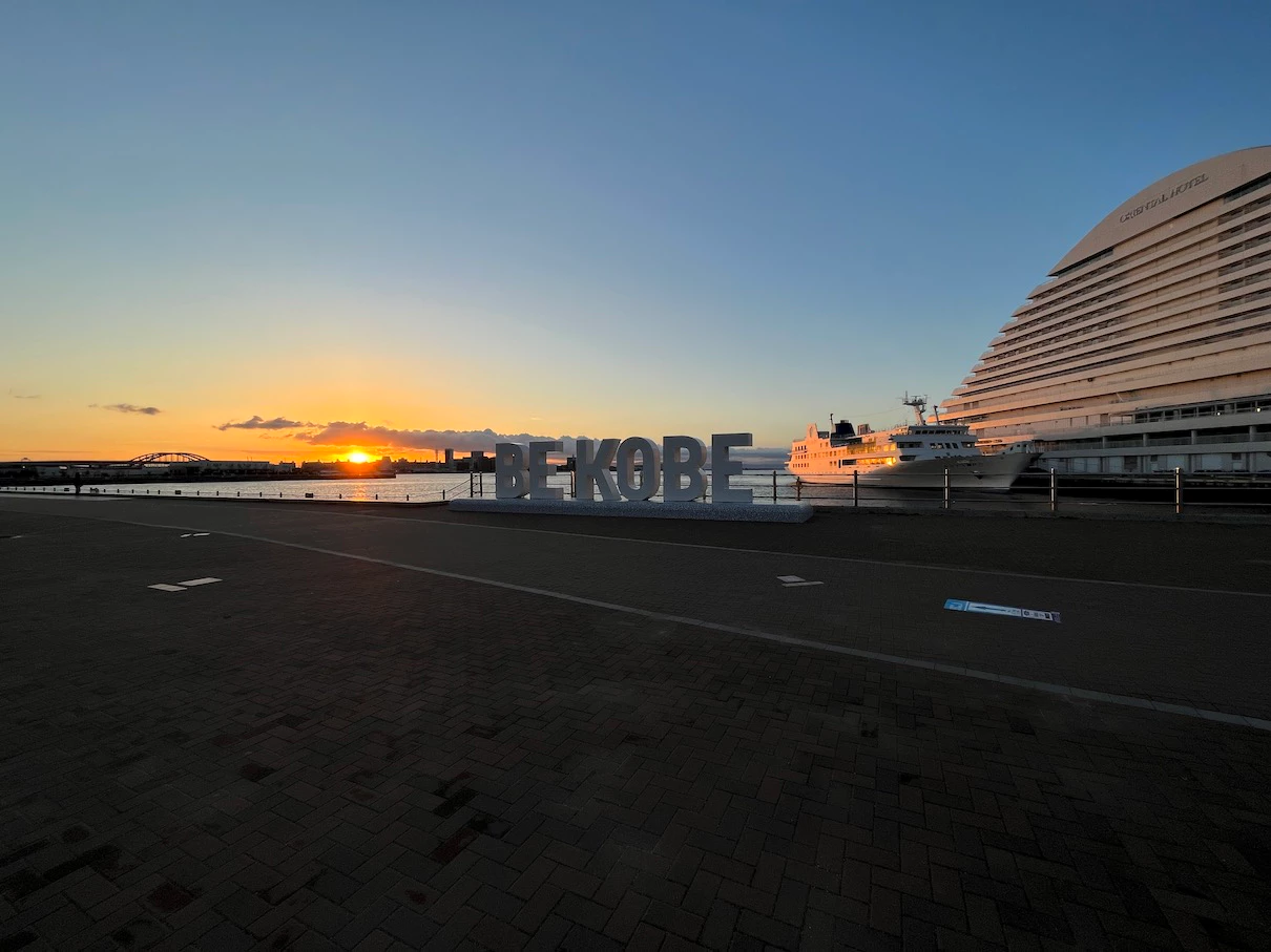 고베 메리켄파크 BE KOBE 앞에서 보는 일출
