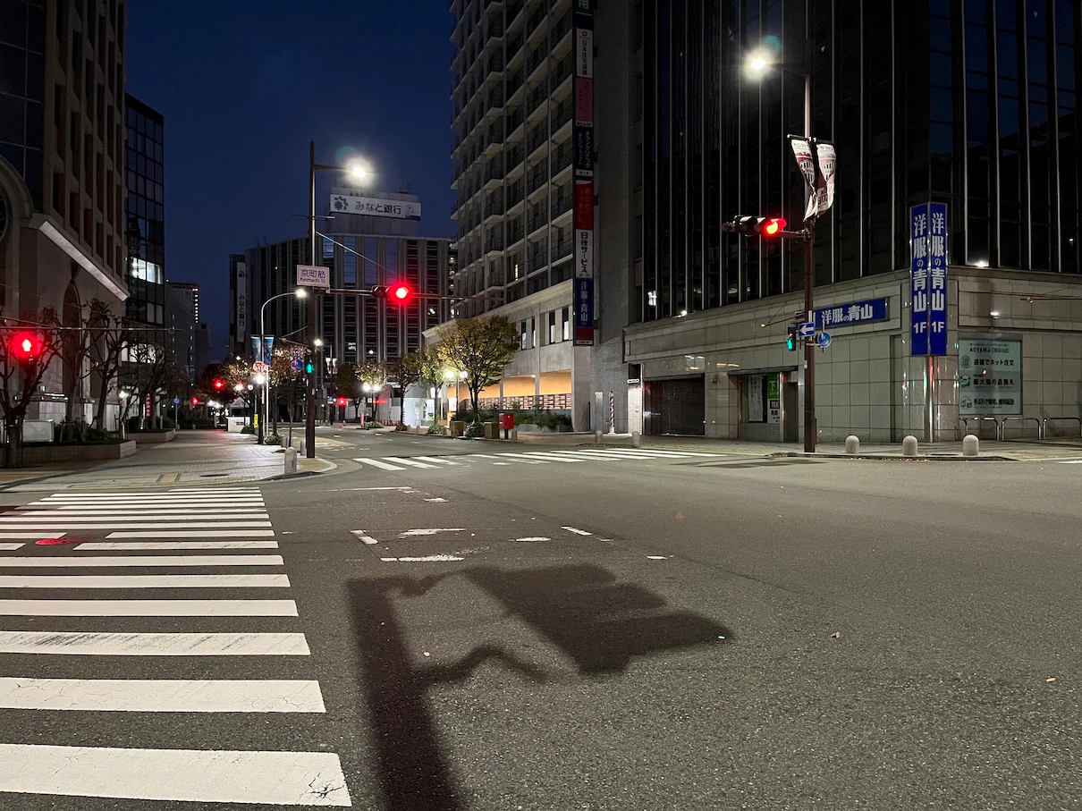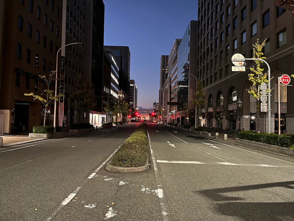새벽의 우메다는 어제 교토에서 돌아왔을 때와는 확연히 다른 모습으로 매우 조용해요.