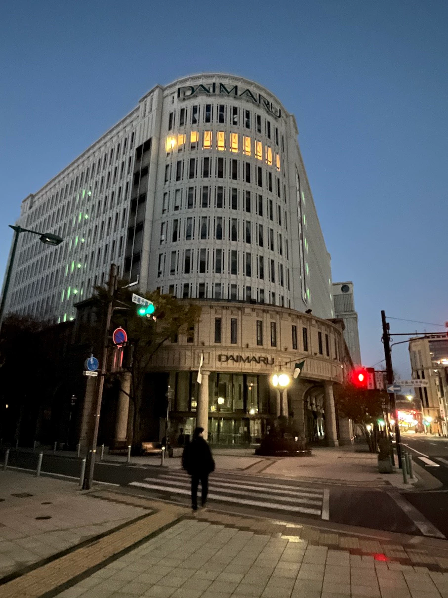 다이마루 백화점인데 맨 윗층에서 한 층 아래는 불이 켜져 있네요.