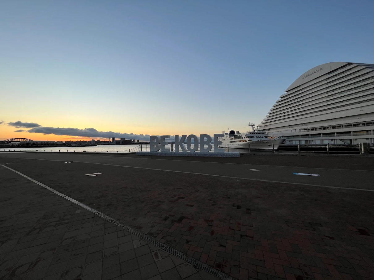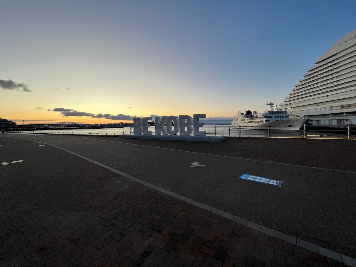여기를 일출 관람 장소로 정한 이유가 여기에 있는 BE KOBE 조형물과 함께 바다에서 일출을 보고 싶다는 생각에서였어요.