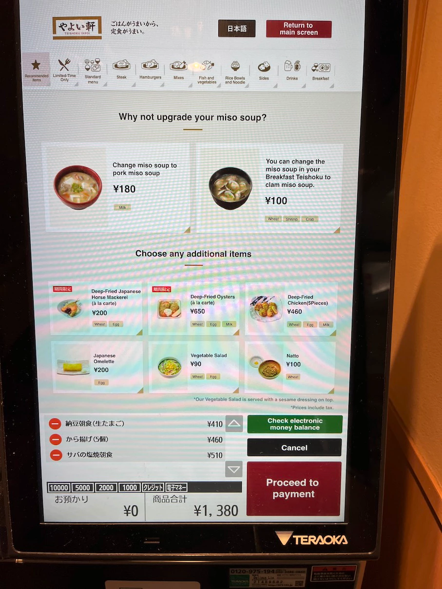 저번 여행에서도 야요이켄은 2번 정도 방문했었기에 자동판매기 사용은 익숙해요.