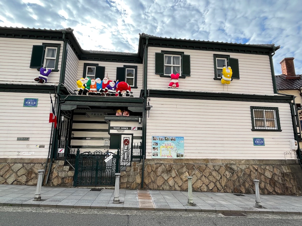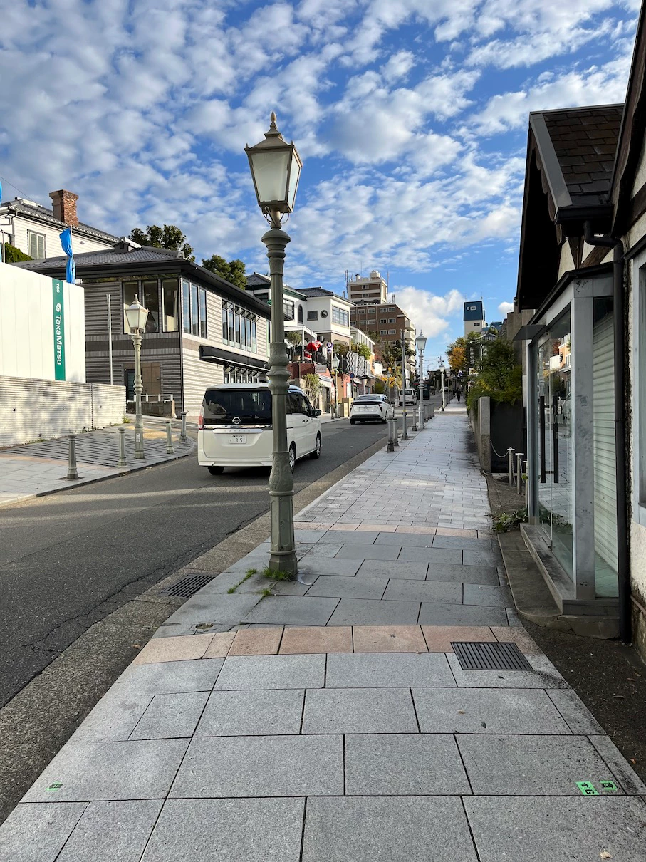 길에 세워진 작은 기둥들이 뭔가 싶어서 보니 기타노이진칸에 있는 건물들의 모습을 새겨놓은 것 같아요.