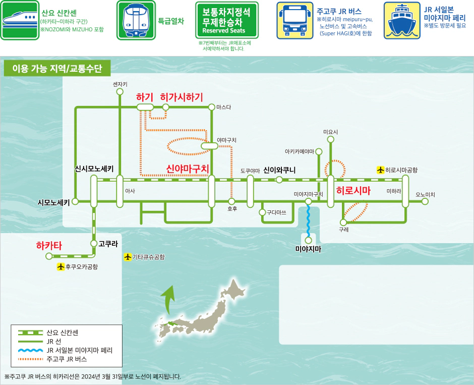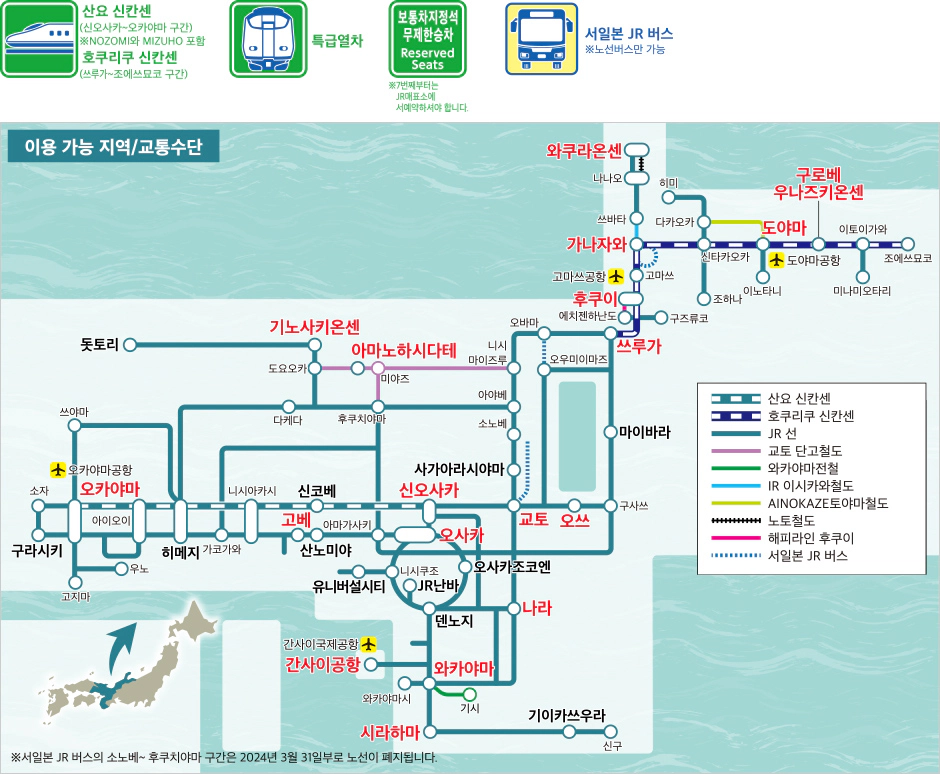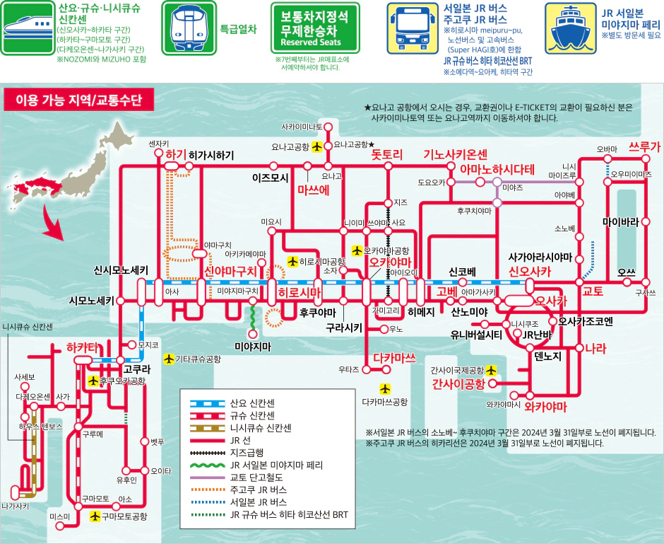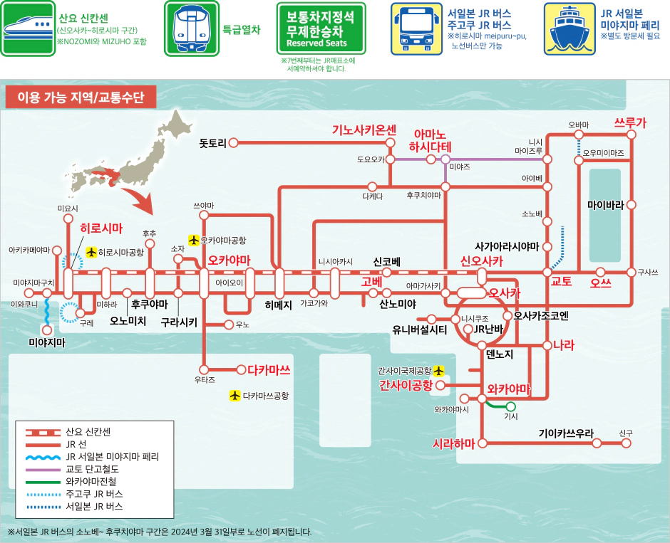 JR서일본 패스 정리(요금/기간/이용가능지역&노선 등) (업데이트 2024. 03. 16.)