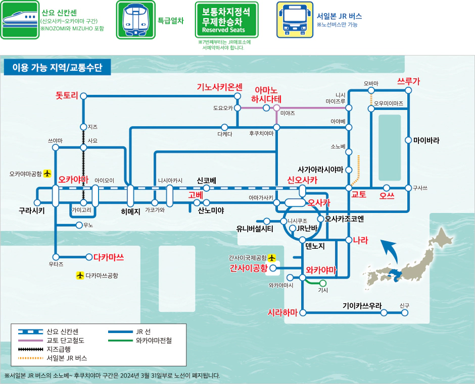 이용가능 주요도시 : 오사카, 교토, 고베, 나라, 히메지, 오카야마, 다카마쓰, 돗토리