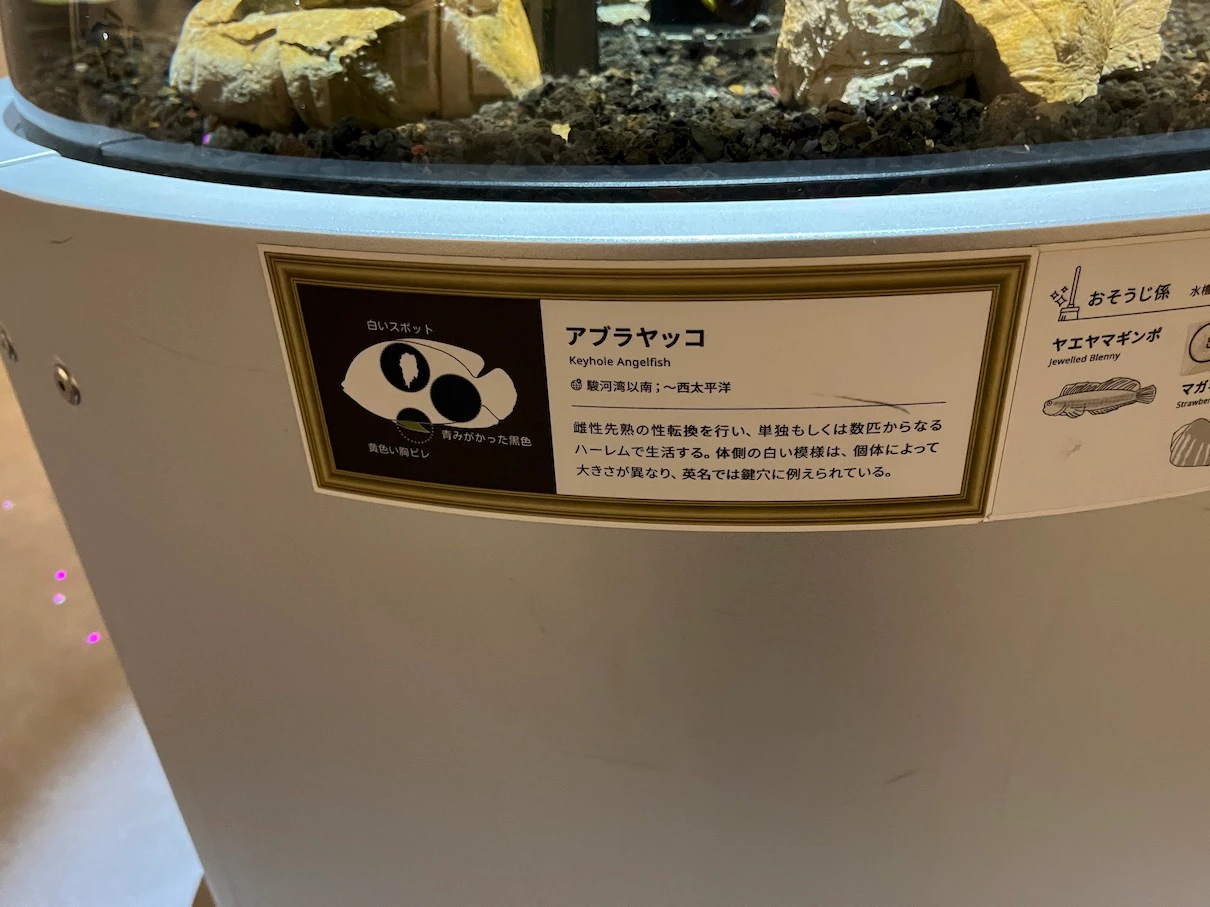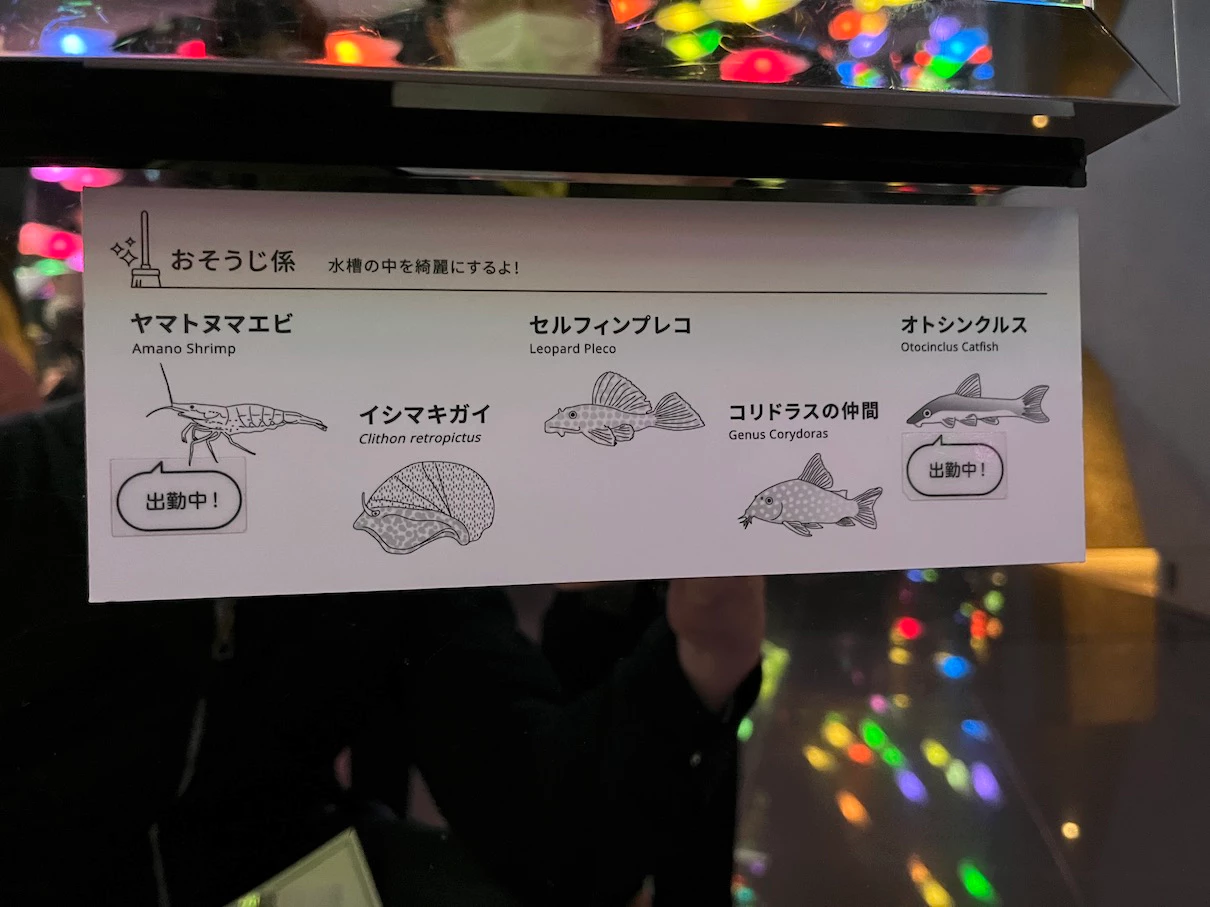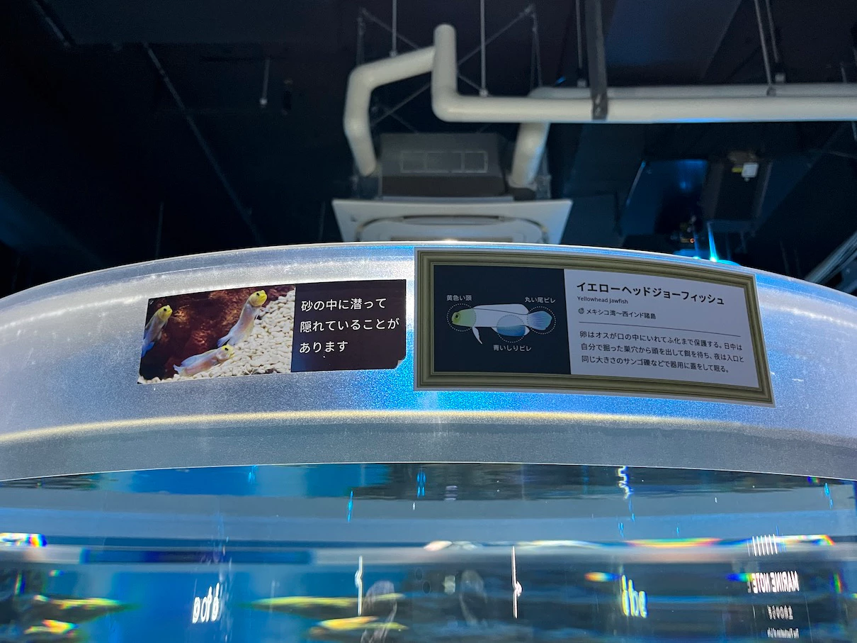 수조 위에 설명을 보면 어떤 물고기가 있는지 알 테니 조금 더 쉽게 찾을 수 있을 것 같아요.