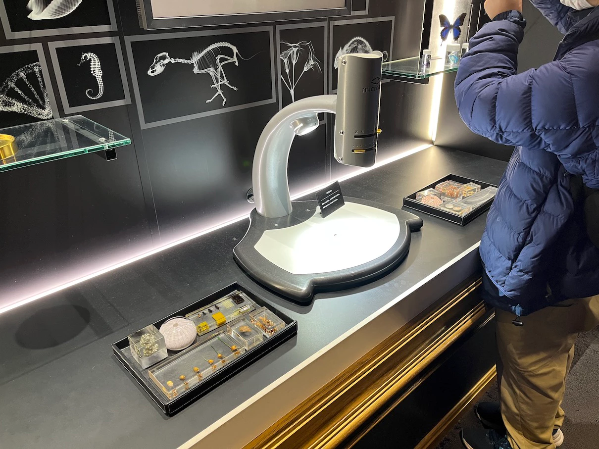 표본을 저 도구 아래에 놓으면 확대해서 볼 수 있는 확대경이에요.