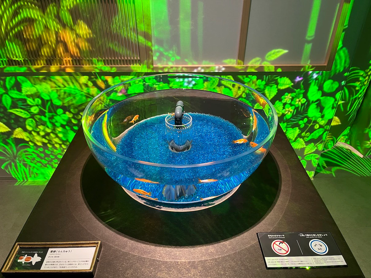 한 쪽 벽면에는 다양한 모양과 색상의 작은 수조가 있어요.
