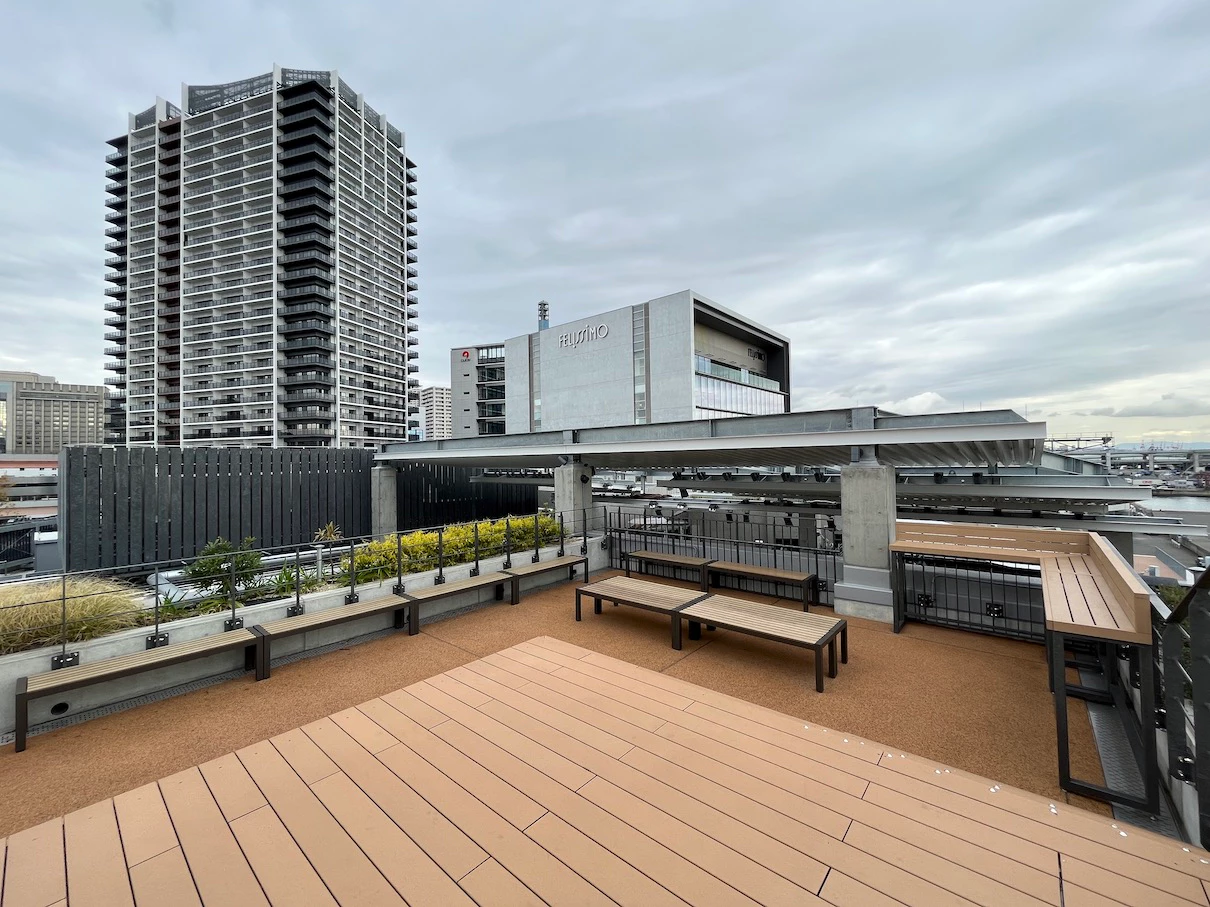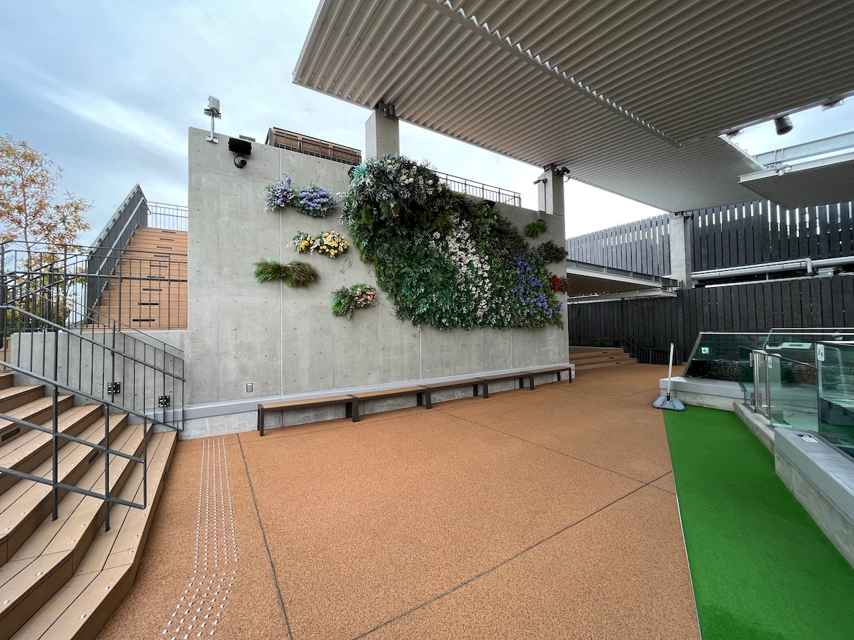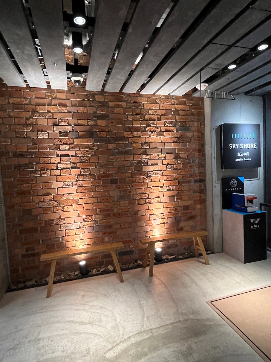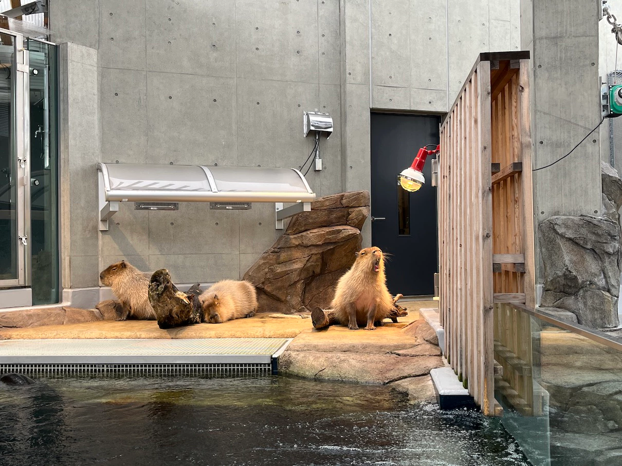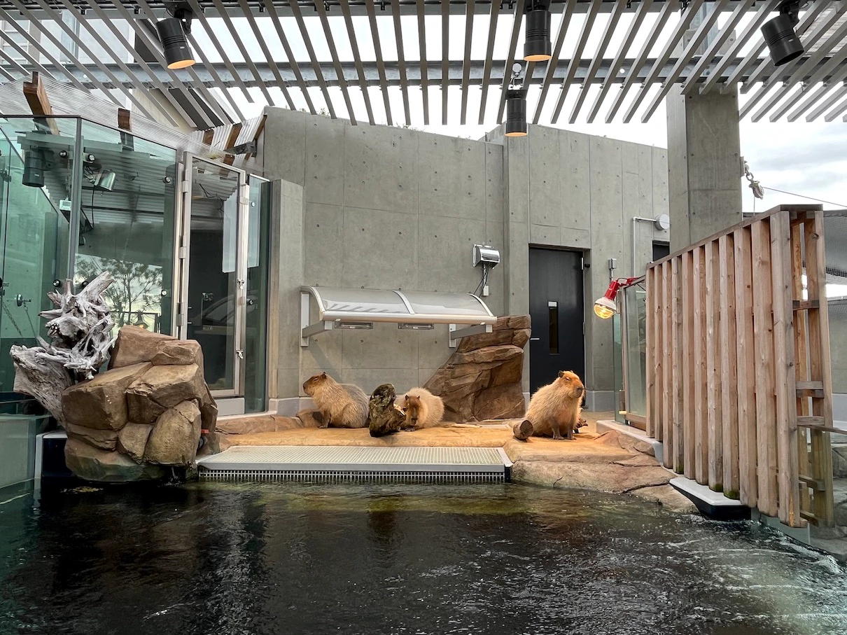루프탑에 아까 봤던 카피바라, 거북이, 펭귄이 한쪽에 있고 한쪽은 벤치와 함께 쉬는 공간이에요.