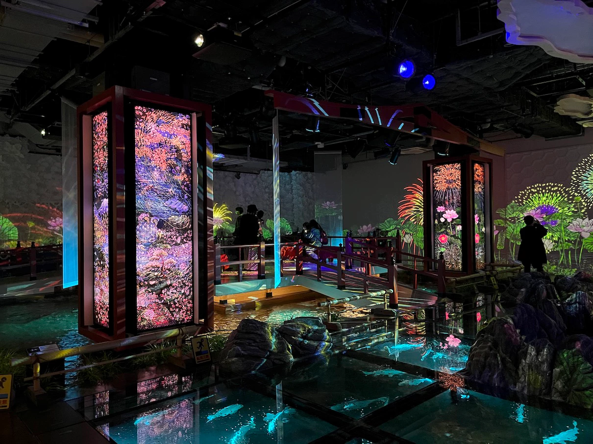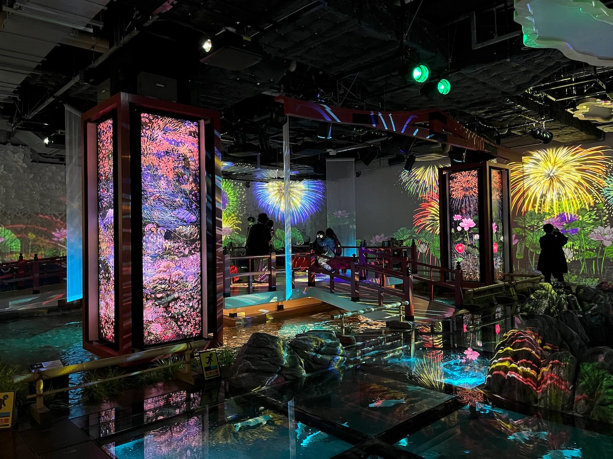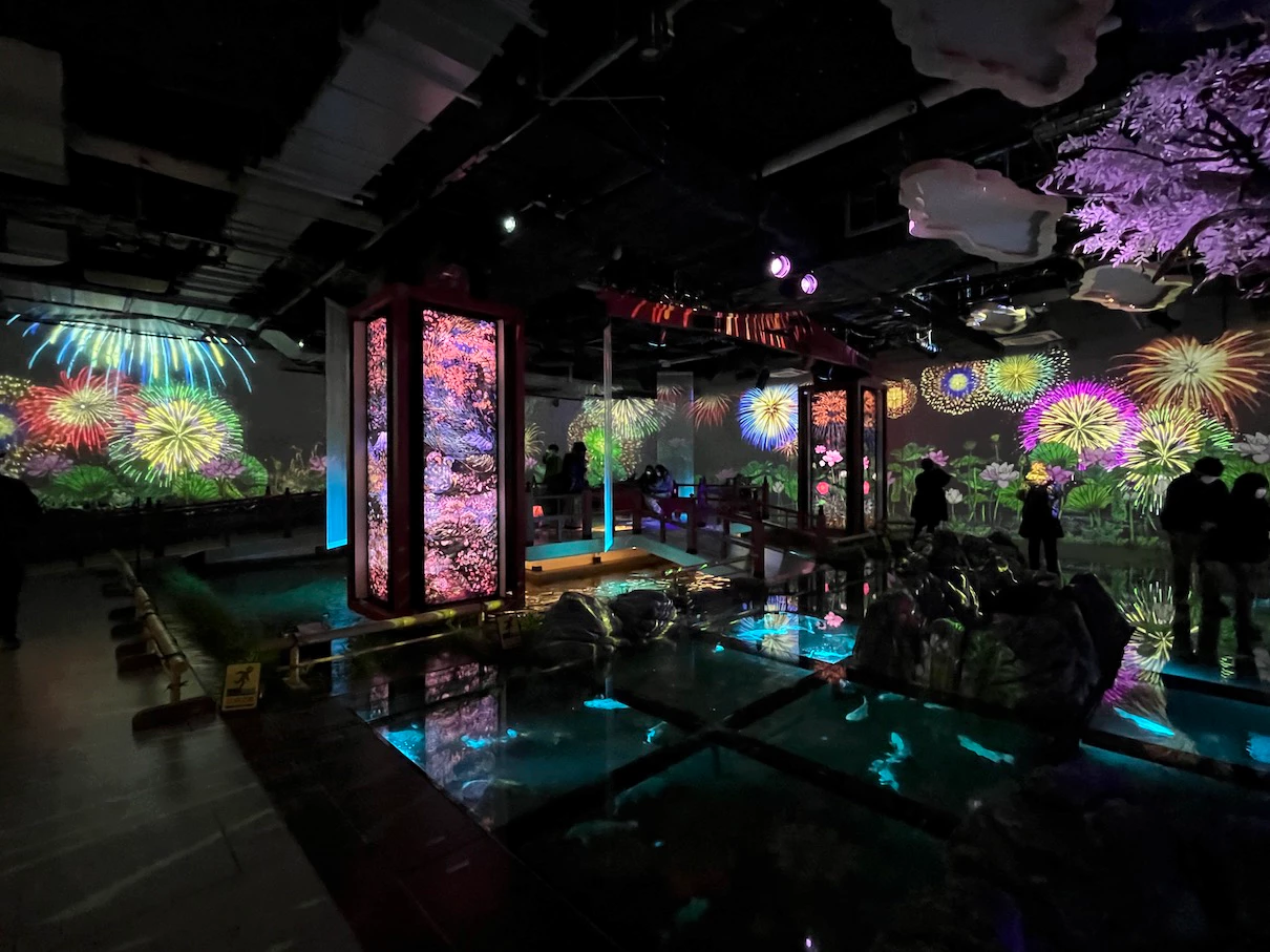 벽면에서는 불꽃놀이 느낌의 영상이 나오고 있어요.