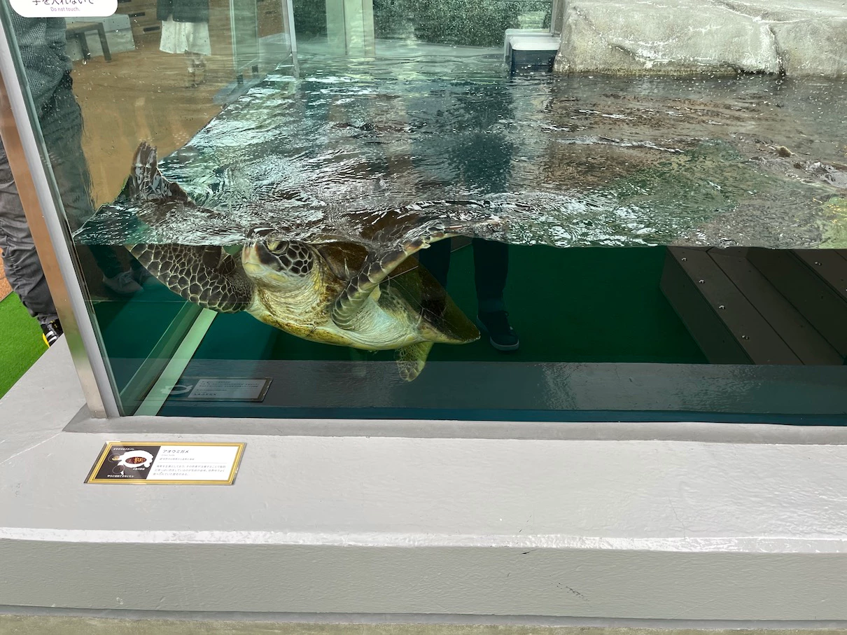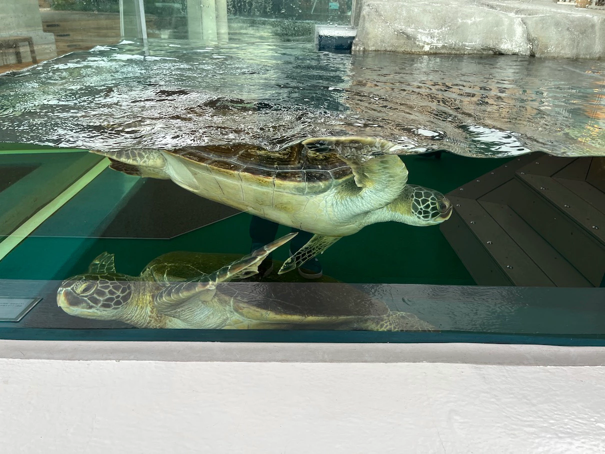 아까 봤던 육지거북과는 달리 여기 거북이 2마리는 바다거북인 것 같아요.