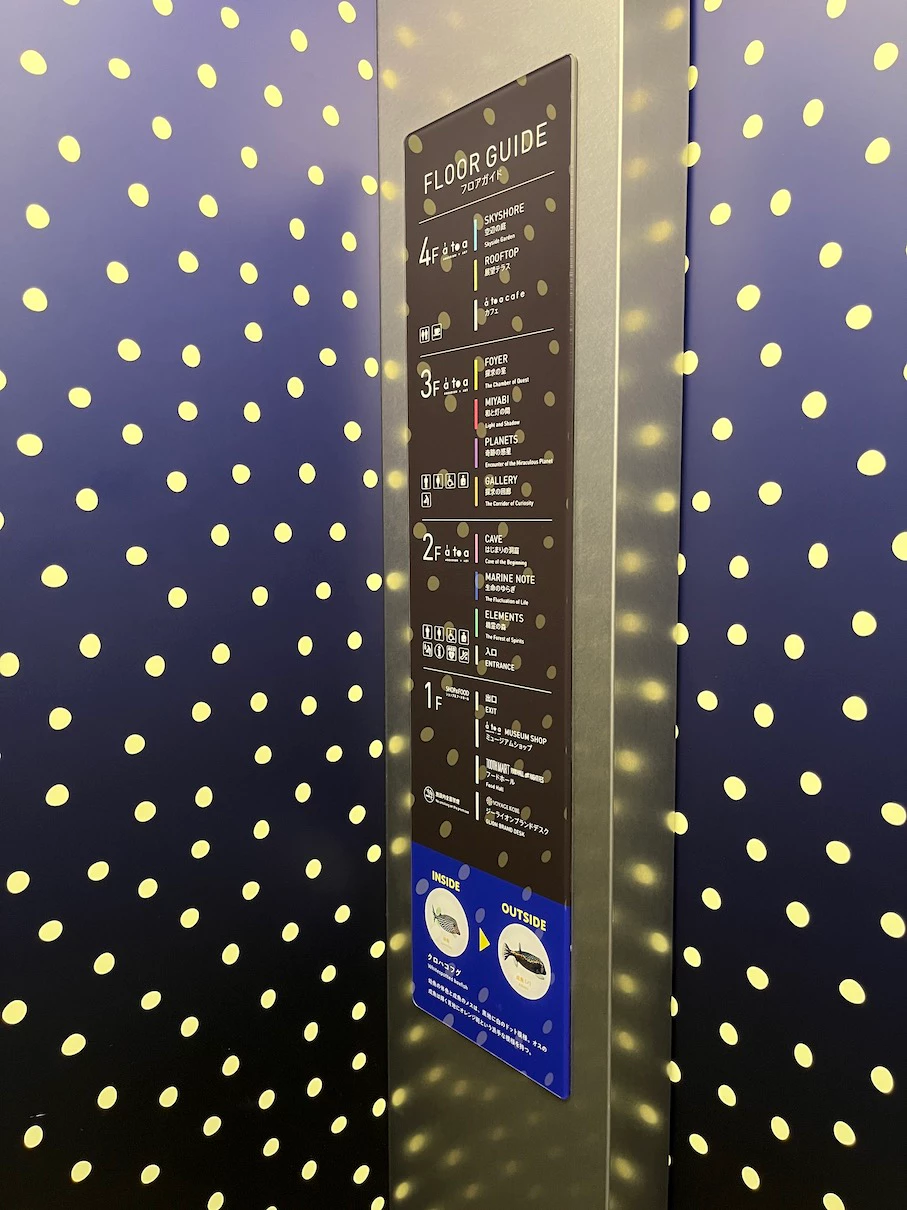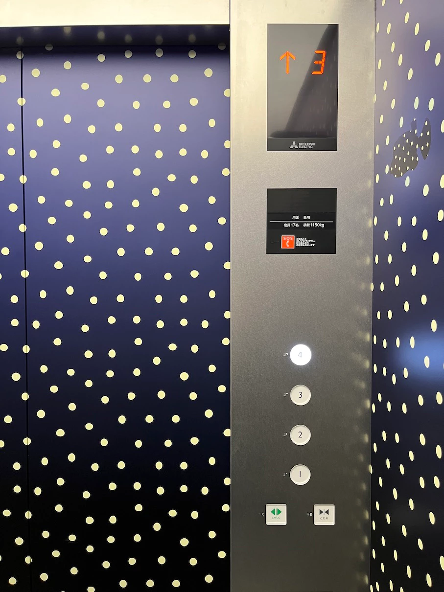 엘리베이터 내부가 아까 봤던 점박이 가오리 무늬로 되어있네요.
