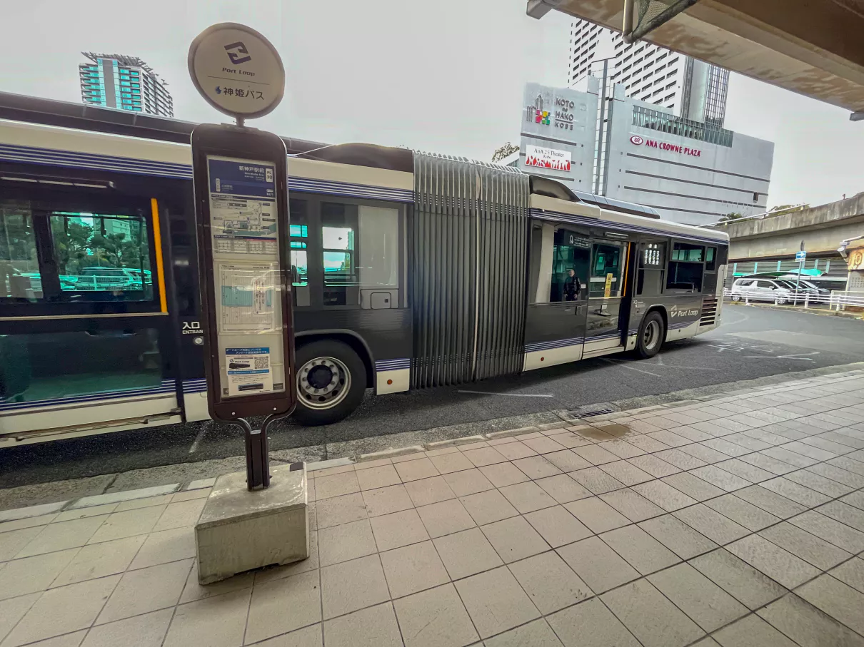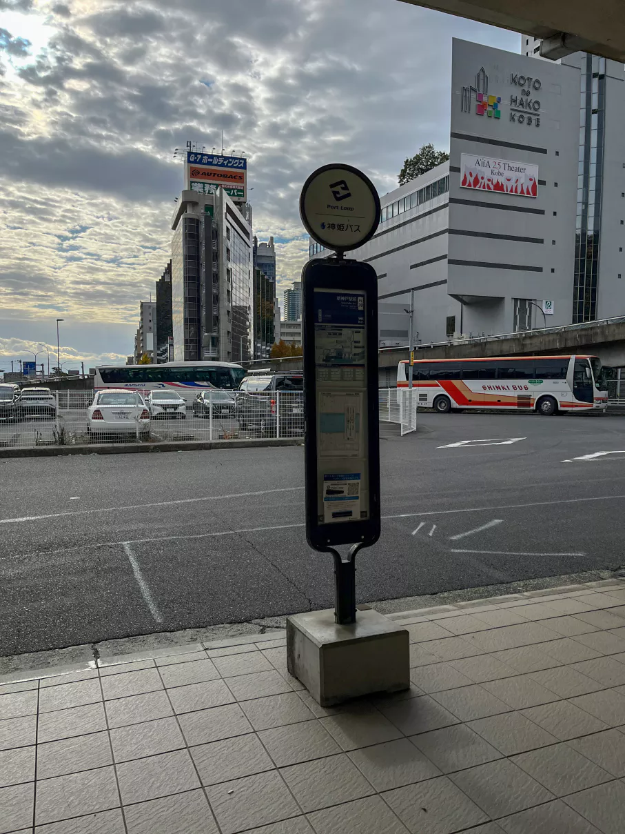 신코베역 1층(역 개찰구가 2층)에 보면 버스 표지판이 2개 있는데 오른쪽의 Port Loop라고 적혀있는 표지판을 보고 시간을 확인해 보았어요.