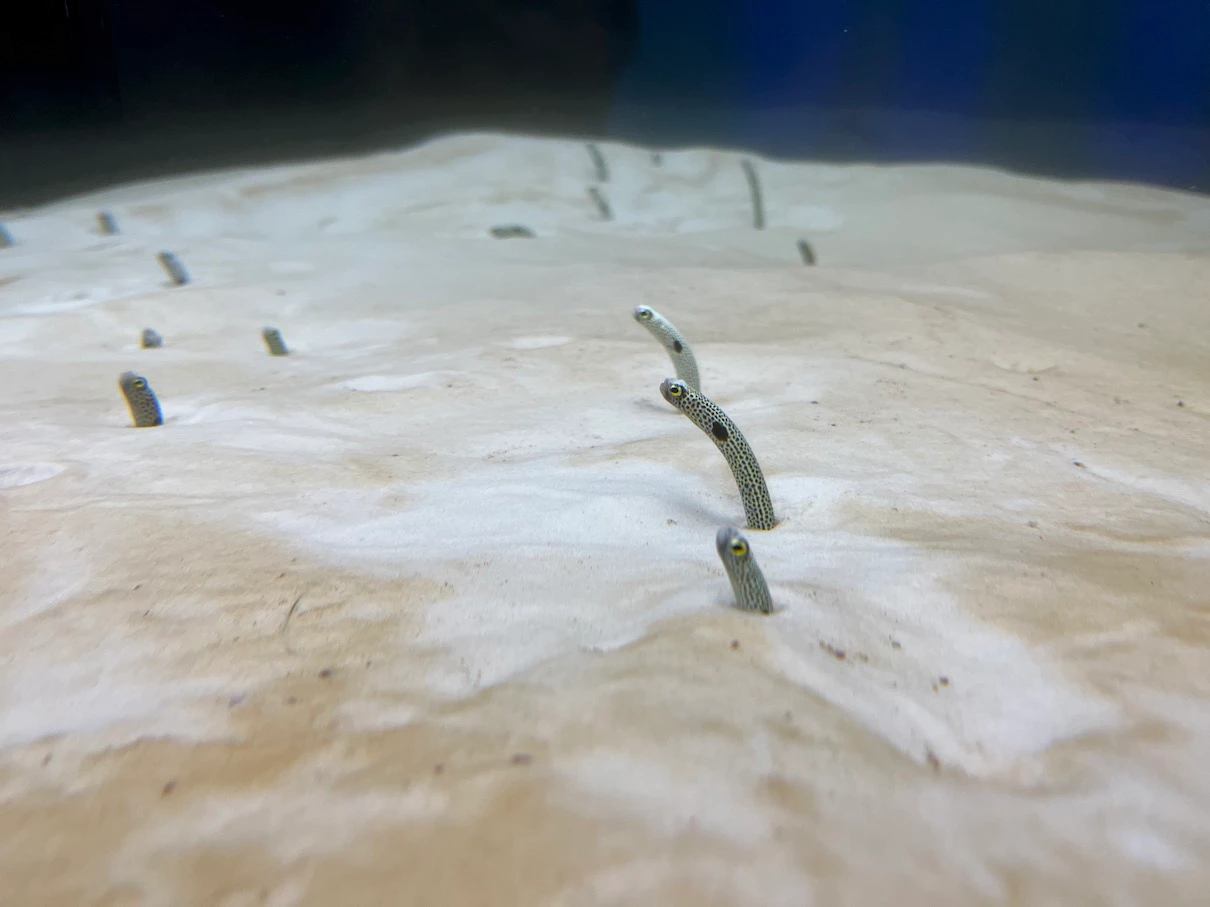 Spotted Garden-Eel이라는 이름의 물고기인데 찾아보면 우리나라 말로 '얼룩무늬 정원장어'로 불리는 것 같아요.