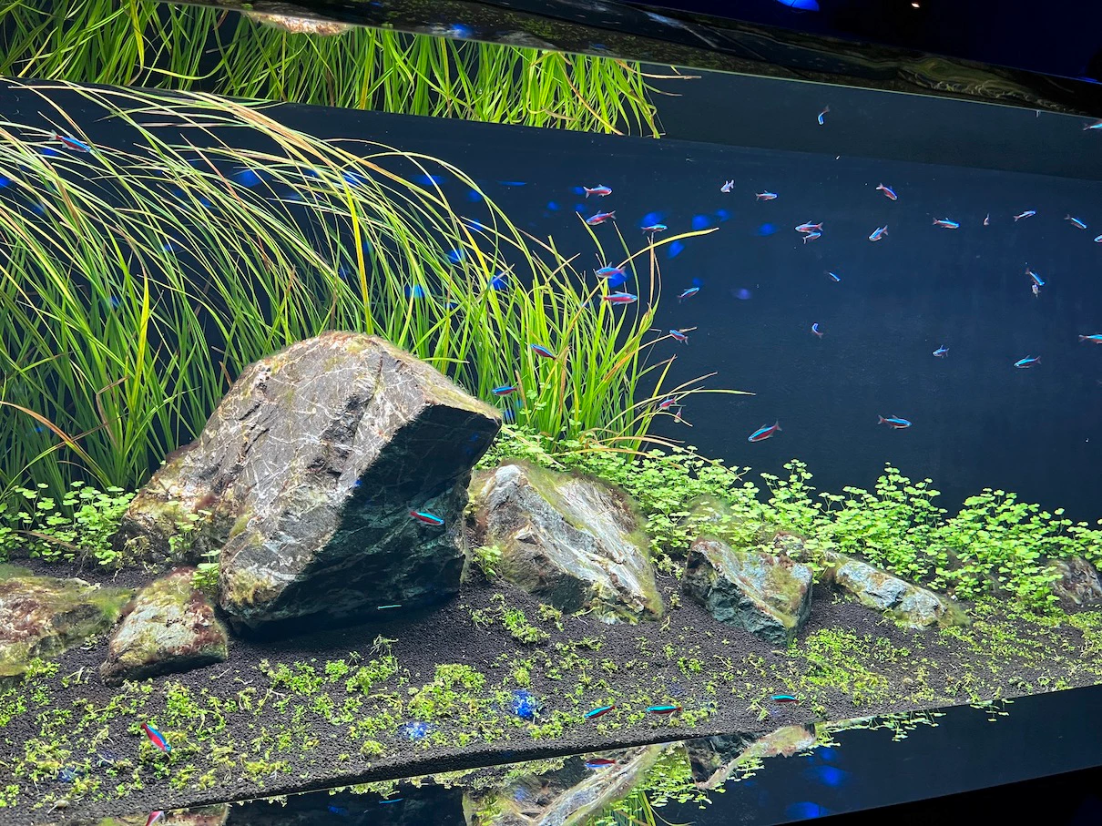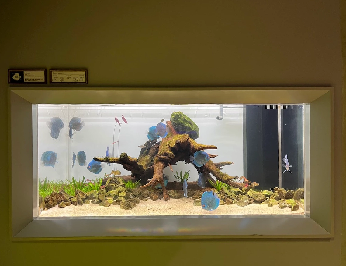 뒤편으로는 밝은 액자 느낌의 수조도 있어요.