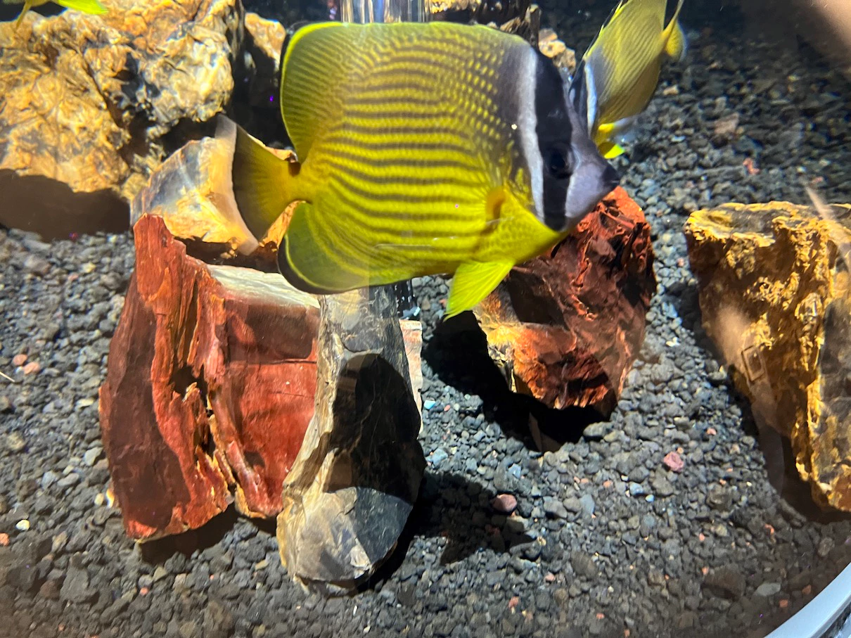 노란 줄무늬가 정말 선명한 물고기네요.