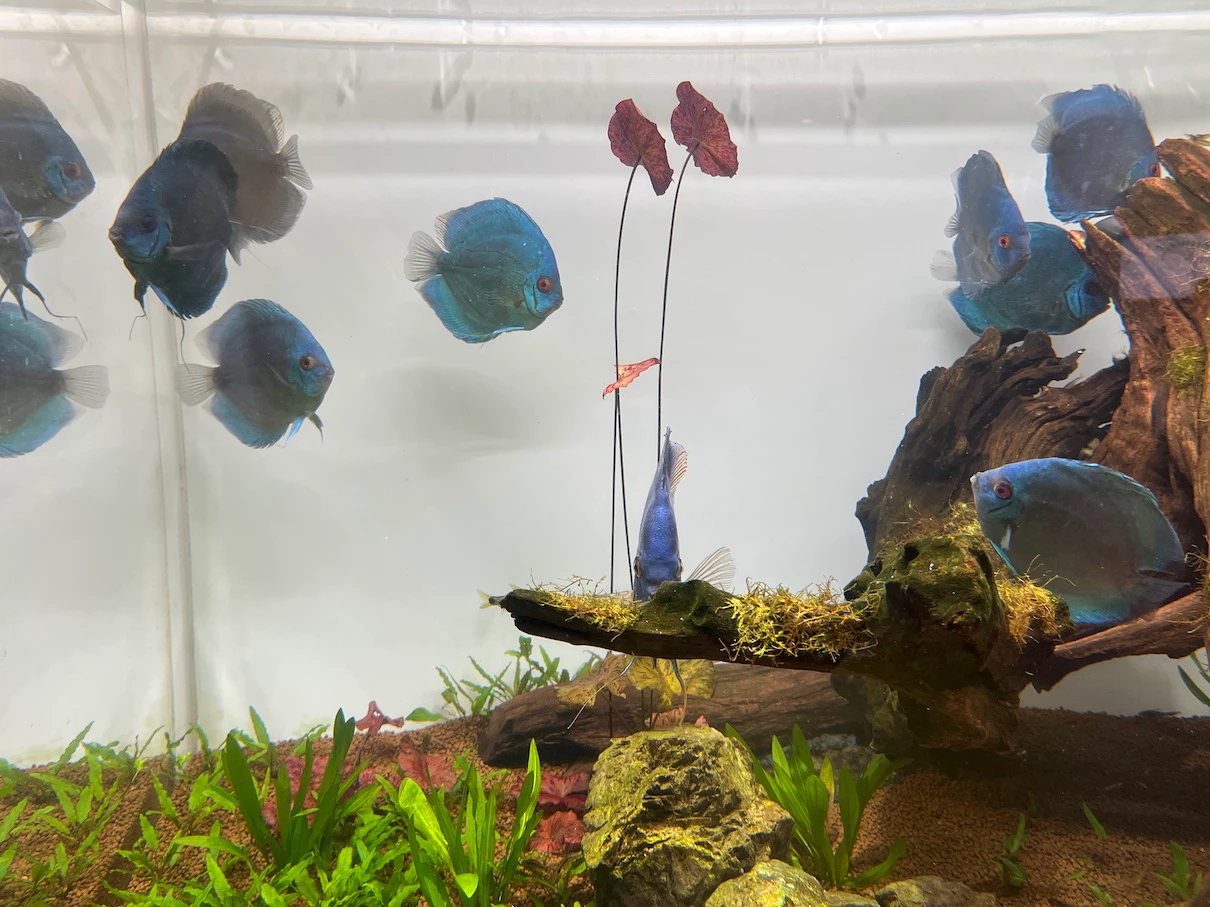 이 수조에 있는 물고기들은 바삐 움직이네요.