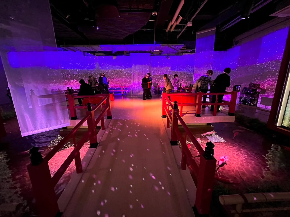 이 장소에서는 시시각각 조명의 색이 바뀌어요.