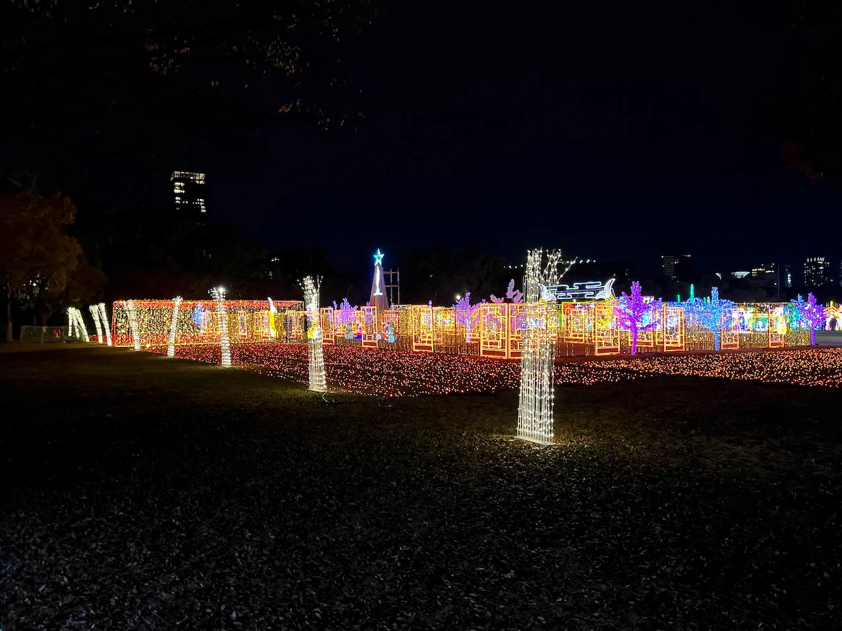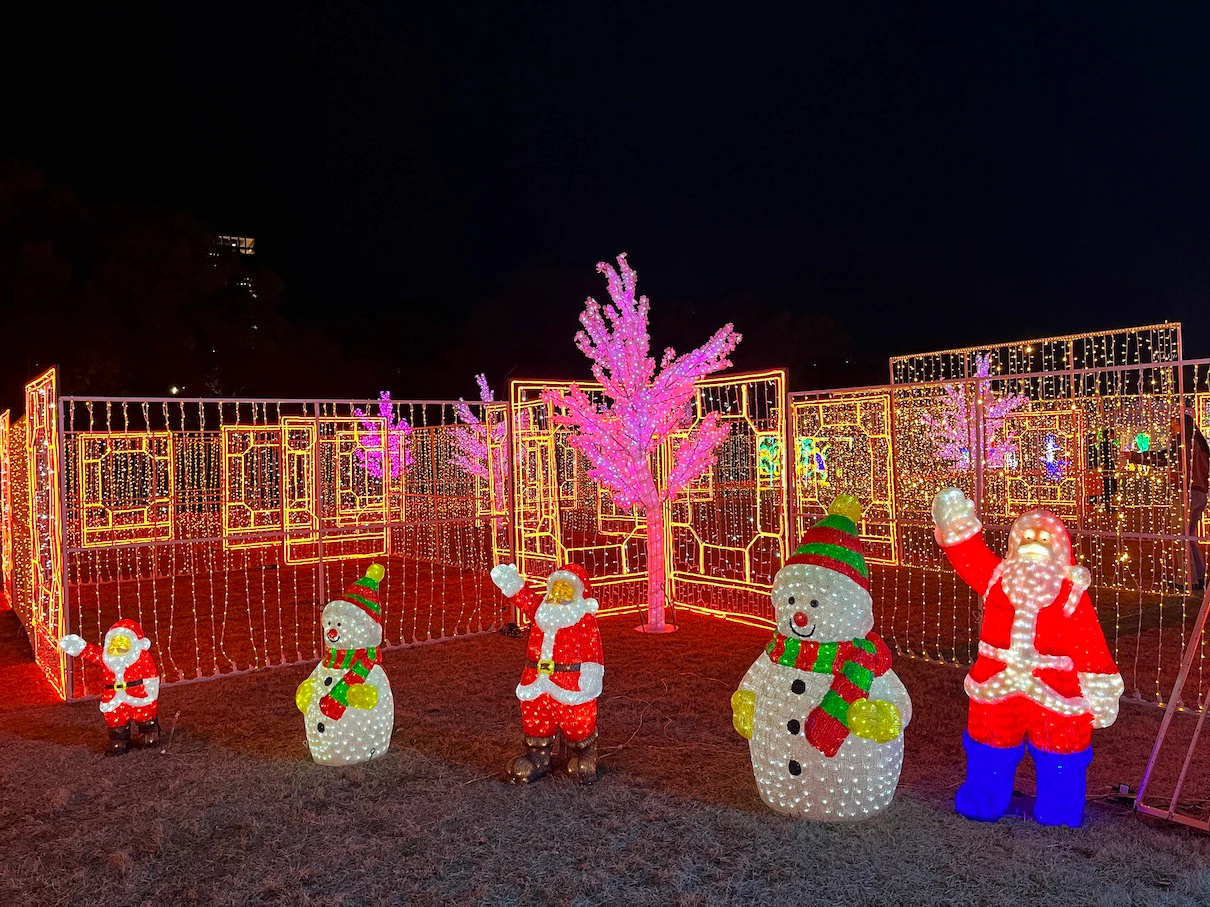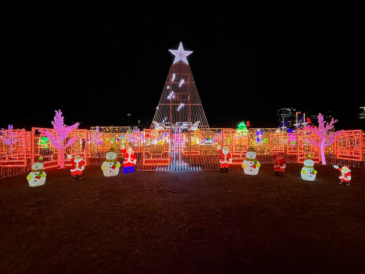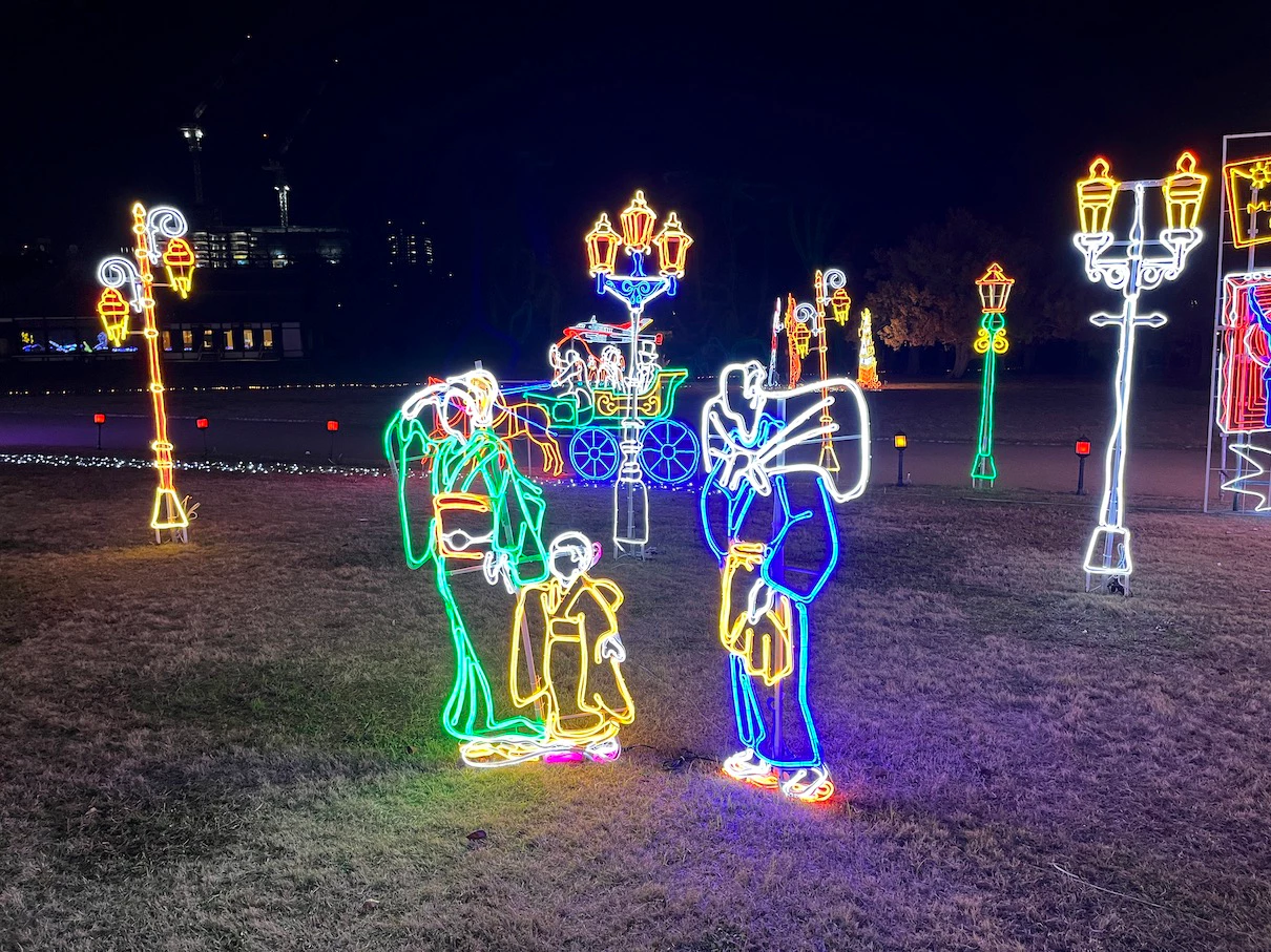 공원 내에 스피커를 설치해서 크리스마스 분위기의 노래들을 틀어주는데 대충 15~20년은 넘은 노래들이 주로 나오는 것 같은 느낌이었어요. 제가 들어본 적은 없는 노래들이었지만 일루미네이션 분위기와 어우러지는 노래들이었어요.