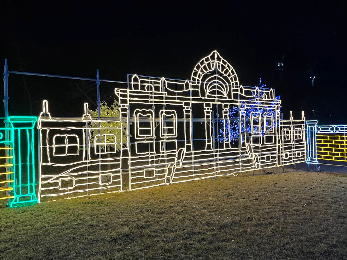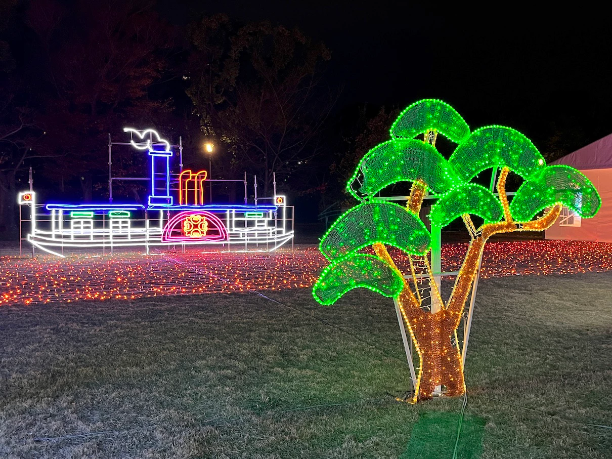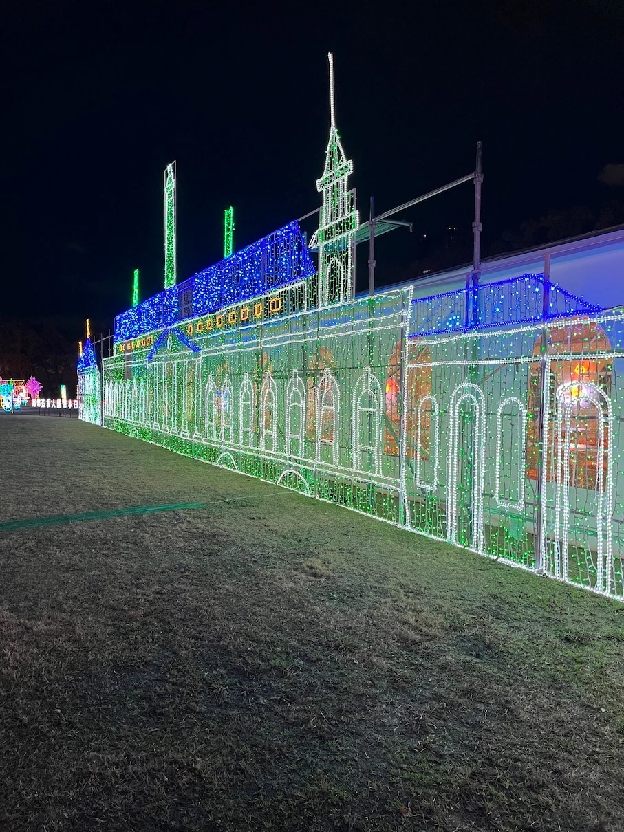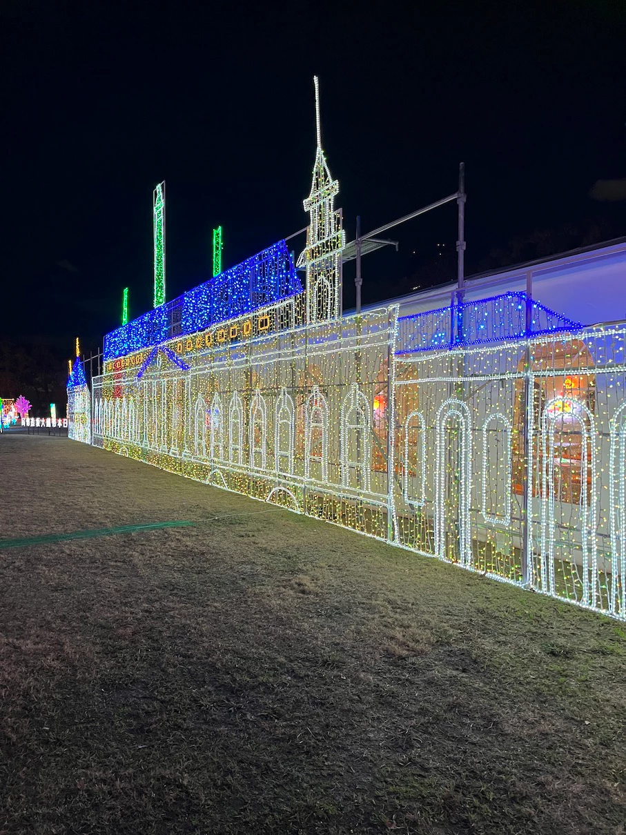 공원 내에 스피커를 설치해서 크리스마스 분위기의 노래들을 틀어주는데 대충 15~20년은 넘은 노래들이 주로 나오는 것 같은 느낌이었어요. 제가 들어본 적은 없는 노래들이었지만 일루미네이션 분위기와 어우러지는 노래들이었어요.