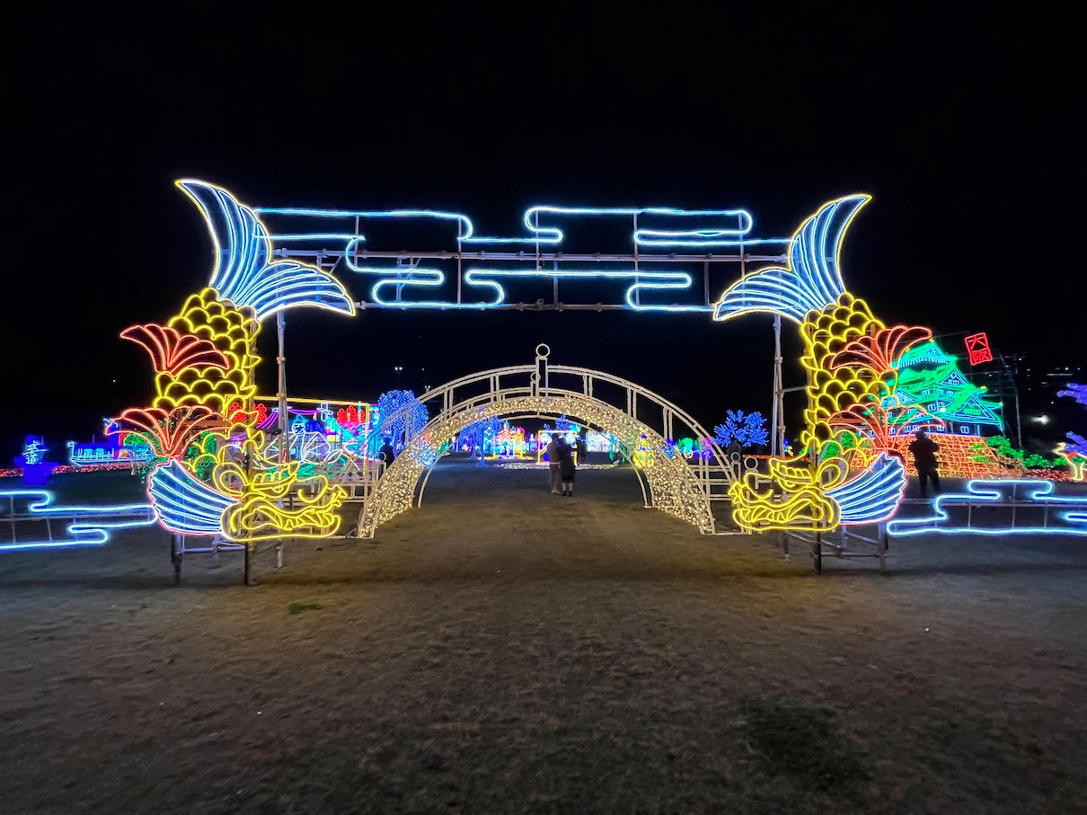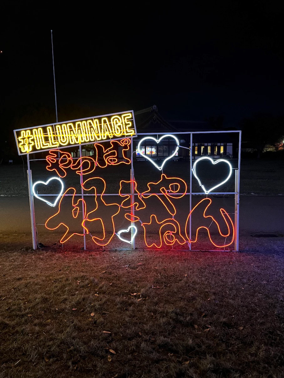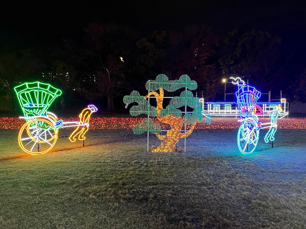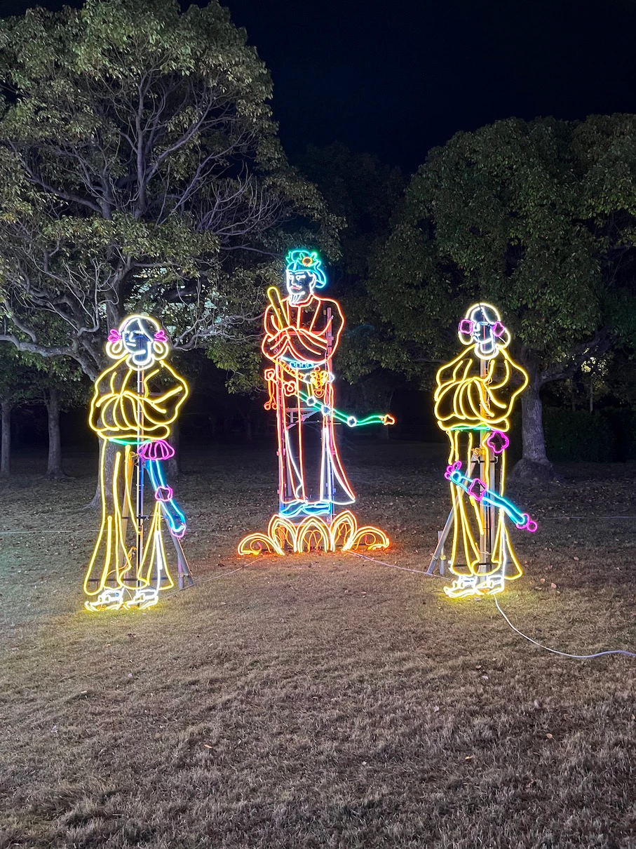 오사카성의 니시노마루 정원 공간에 네온사인으로 이런저런 장식을 해놓은 것이 이번 행사에요.