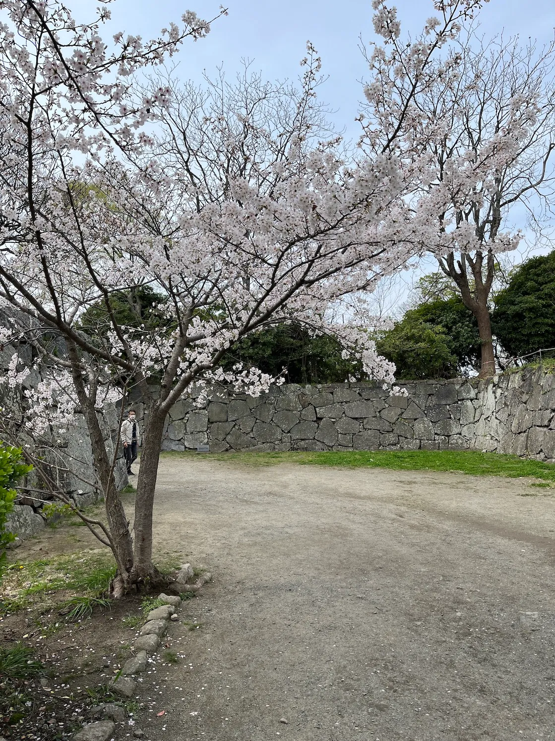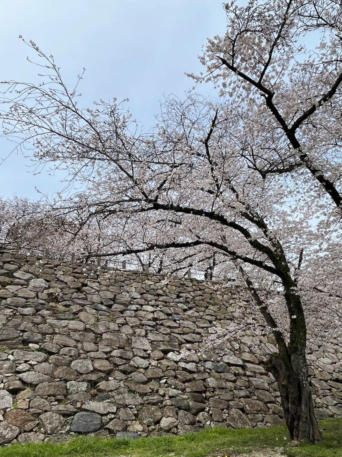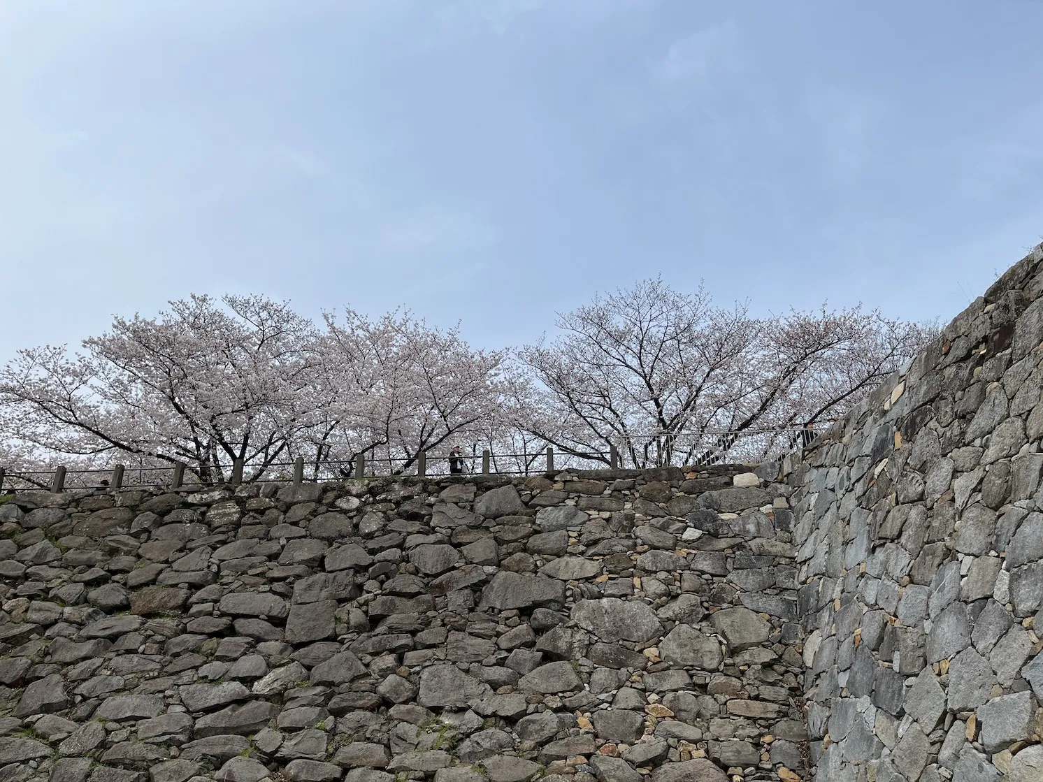 후쿠오카 성터이니 당연히 성벽이 있고 성벽 앞, 뒤, 위를 할 것 없이 벚꽃이 가득하네요.