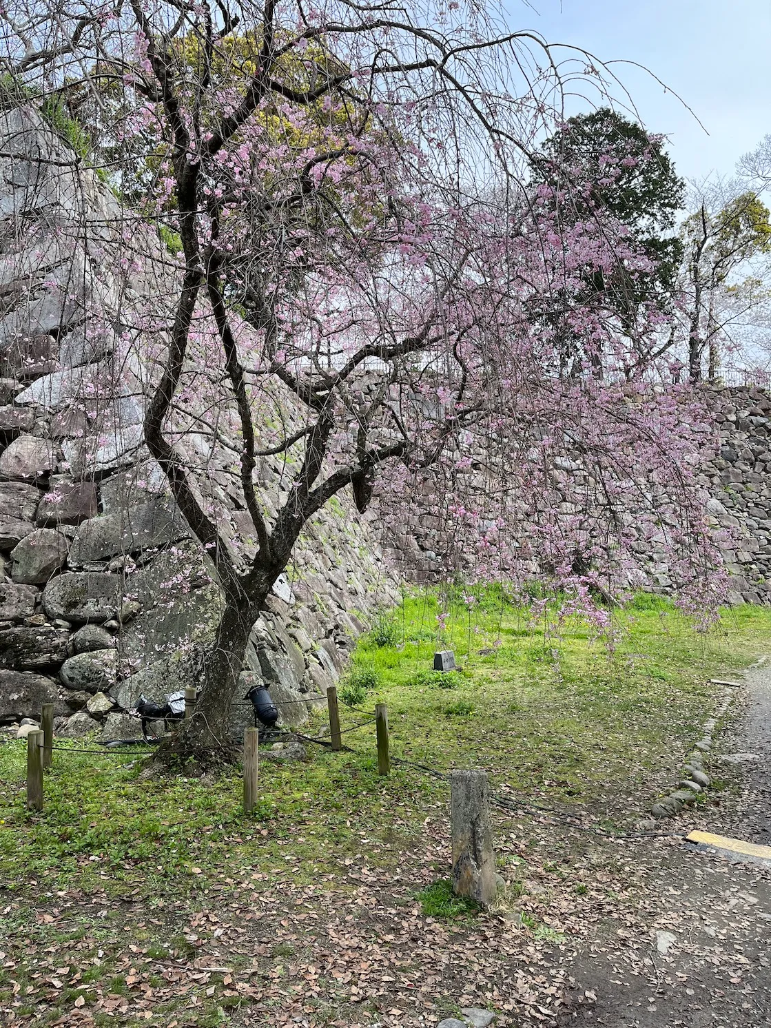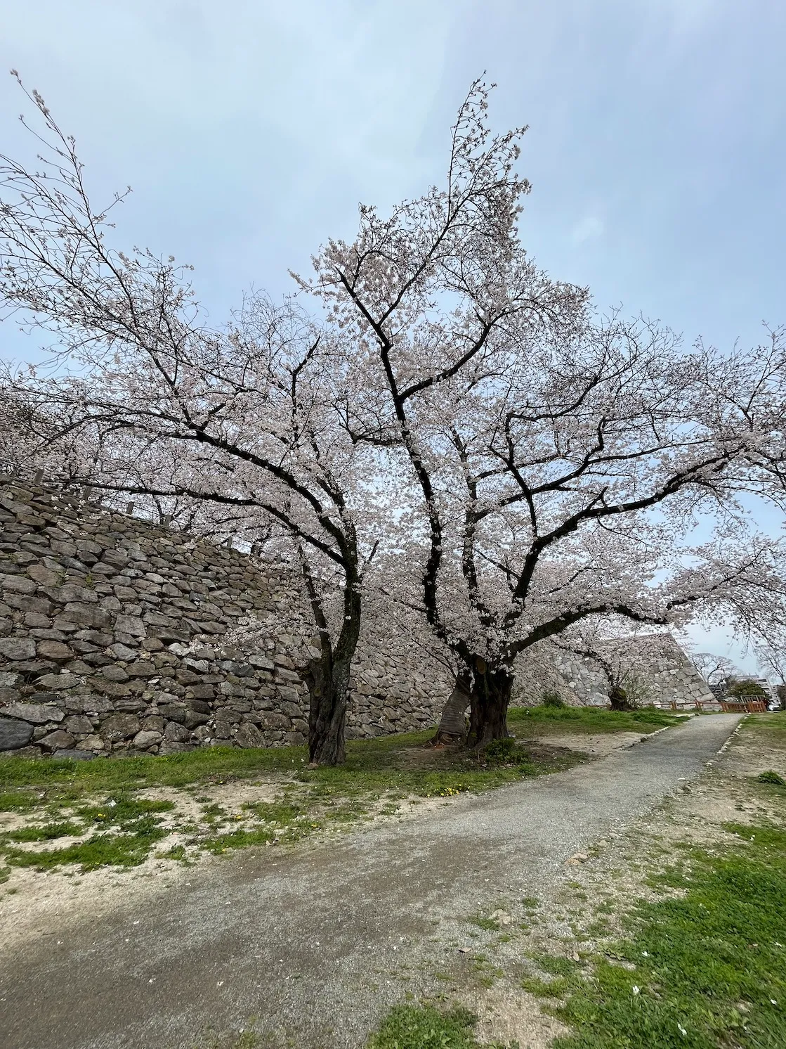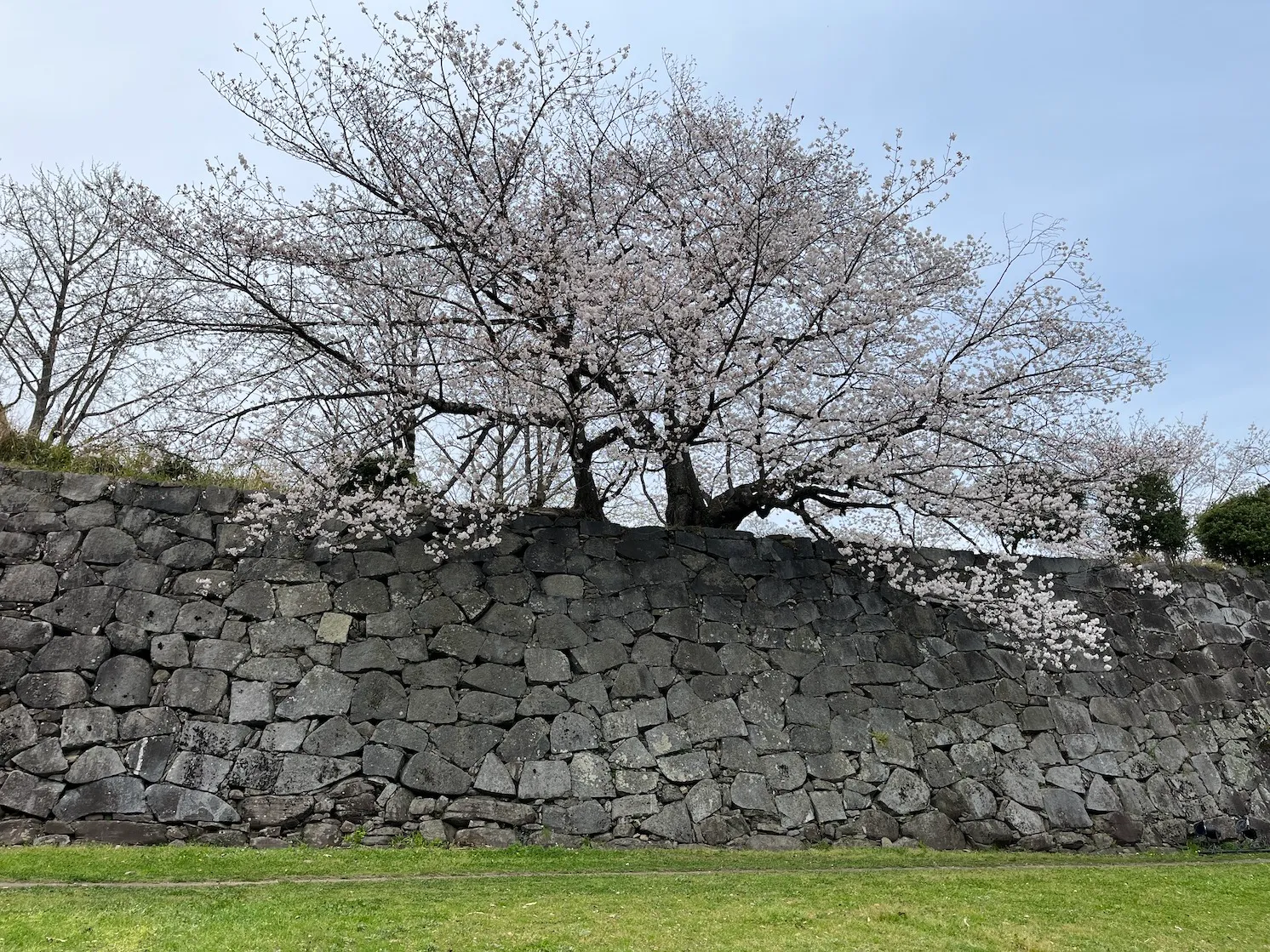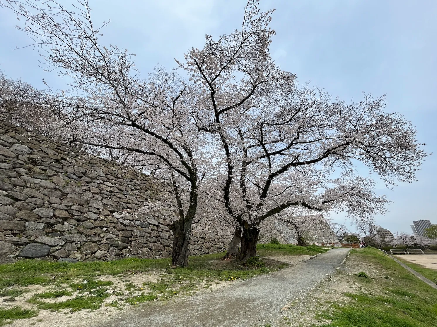 후쿠오카 성터이니 당연히 성벽이 있고 성벽 앞, 뒤, 위를 할 것 없이 벚꽃이 가득하네요.