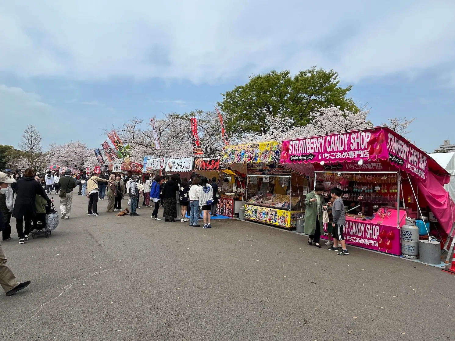 일본 축제라고 하면 길에 늘어선 노점을 생각할 수 있을 텐데 딱 그 느낌으로 노점이 가득 늘어서 있어요.