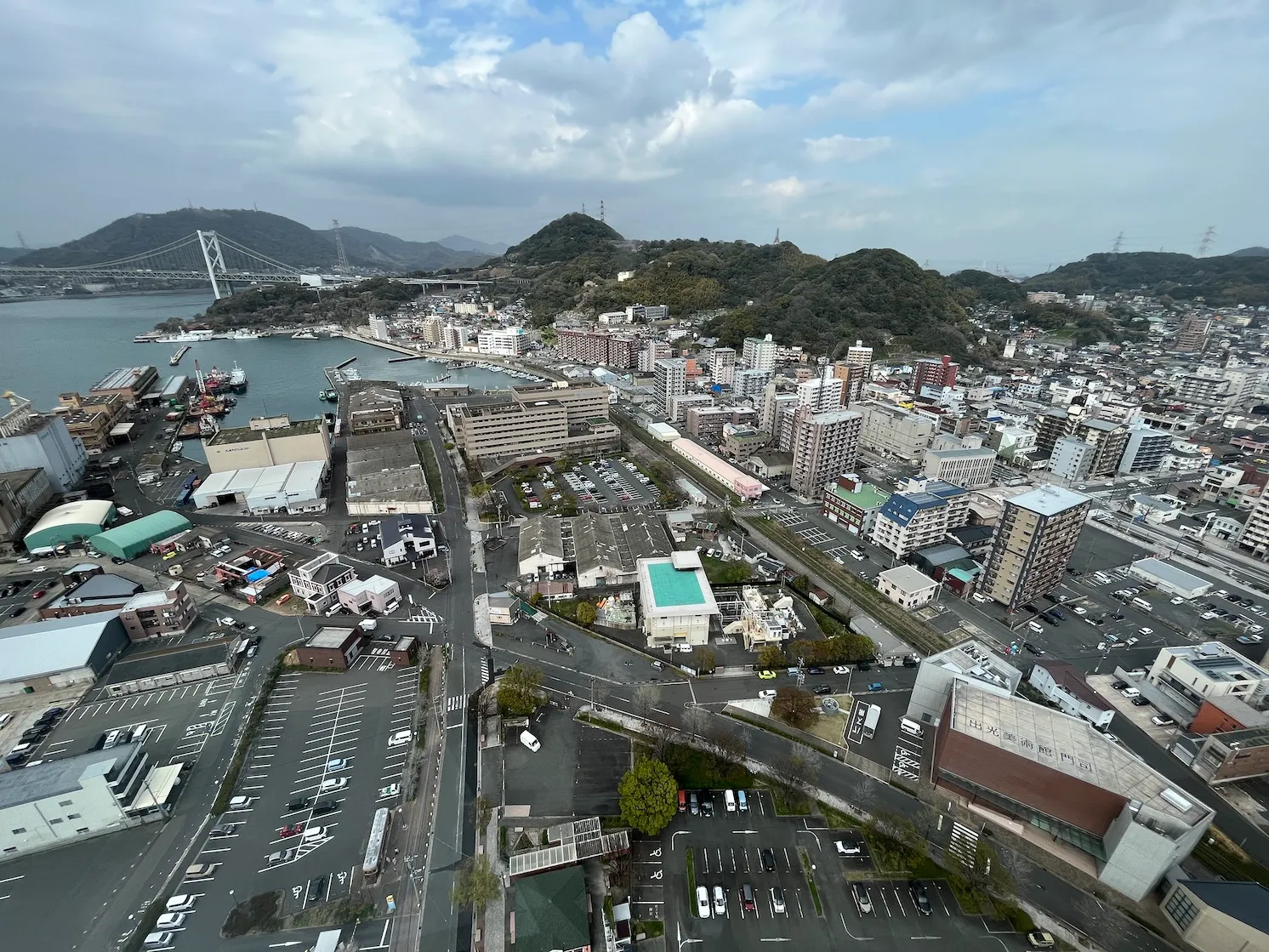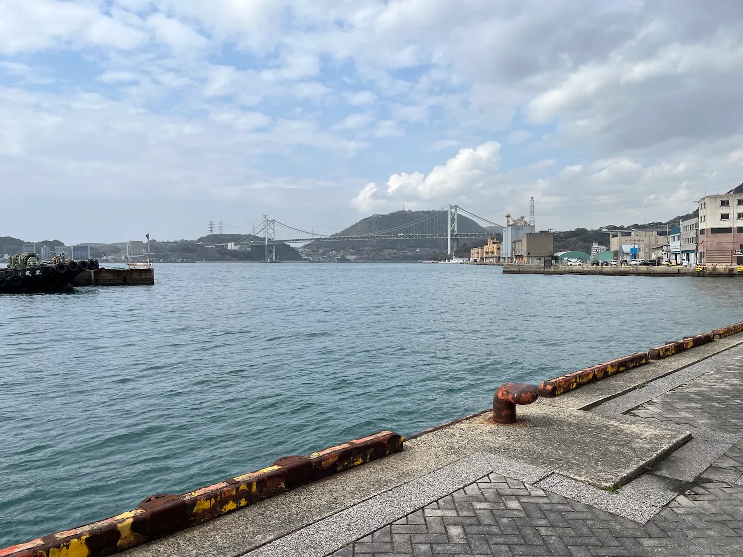 칸몬대교는 큐슈와 혼슈를 연결하는 대교로, 저 아래로는 칸몬터널이라고 보행로가 있고 오늘 지나가야 할 길이기도 해요.