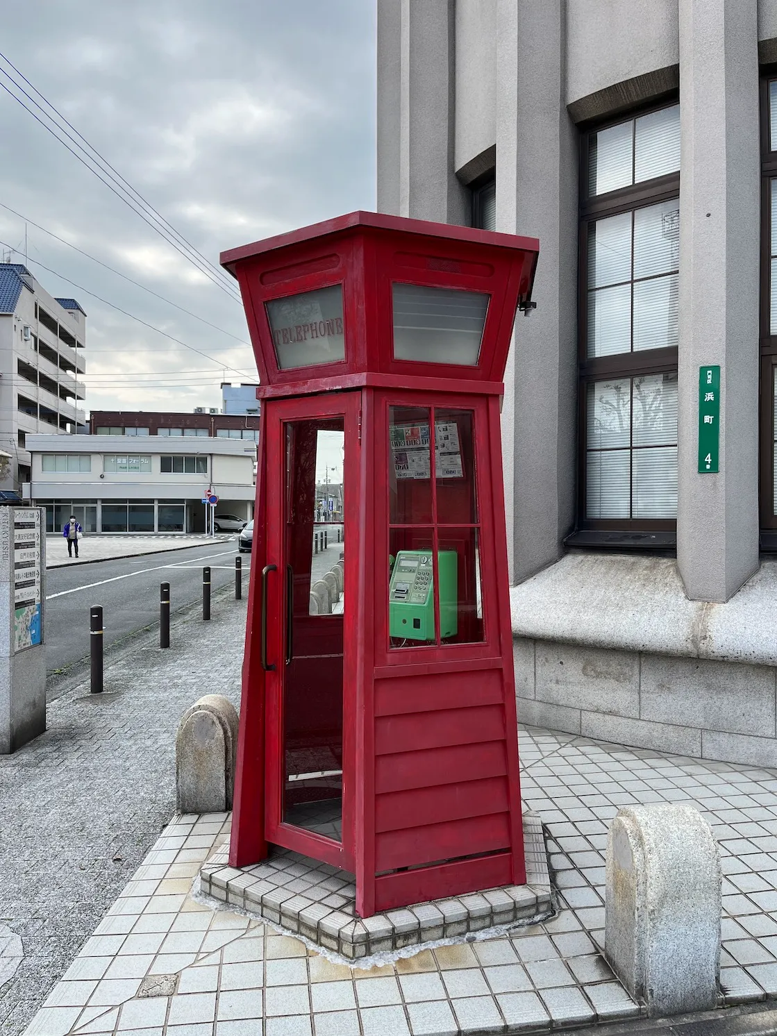 등대를 닮기도 한 것 같은 육각형 기둥의 공중전화 부스가 인상적이에요.