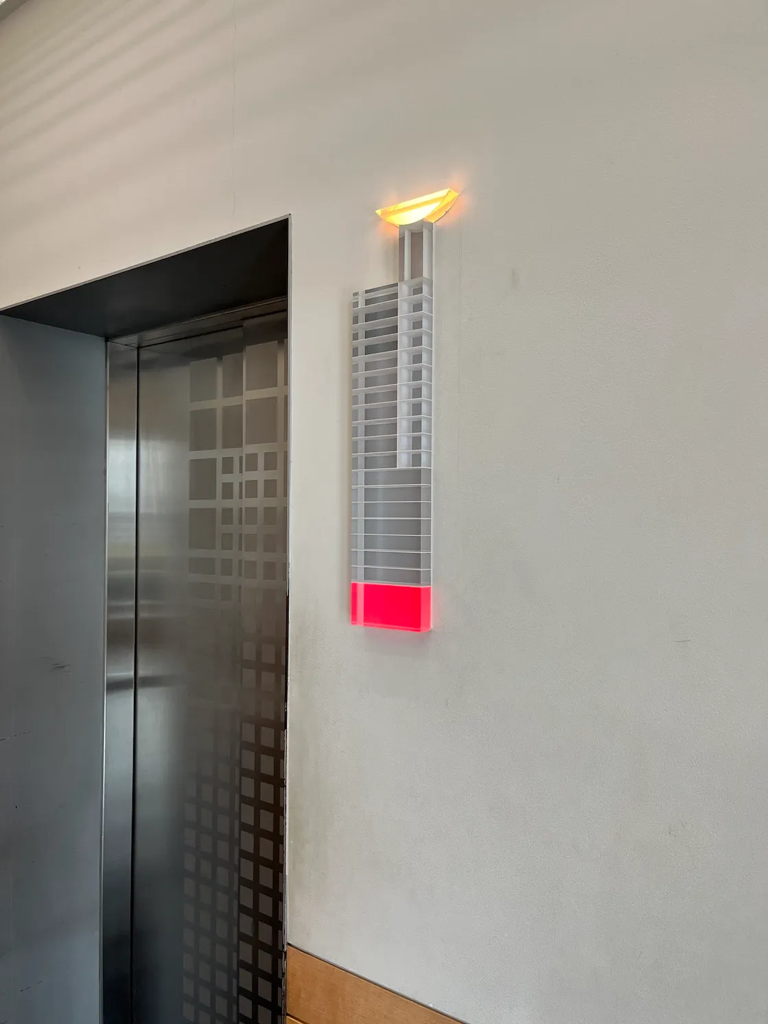 엘리베이터 위치를 알 수 있는 층 표시 대신 건물을 형상화한 표시가 인상적이네요.